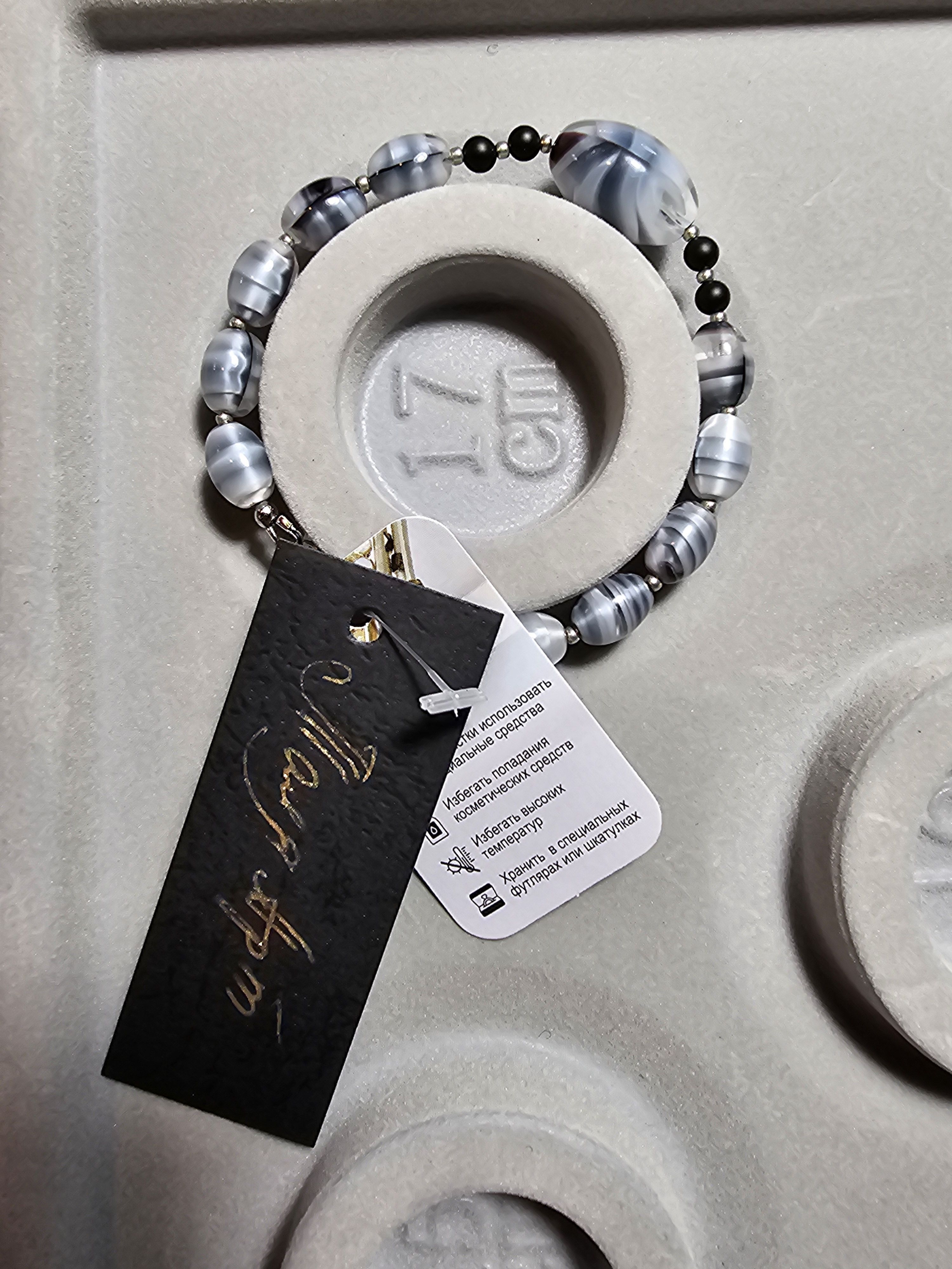 Браслет упакован в коробочку для хранения или подарка.