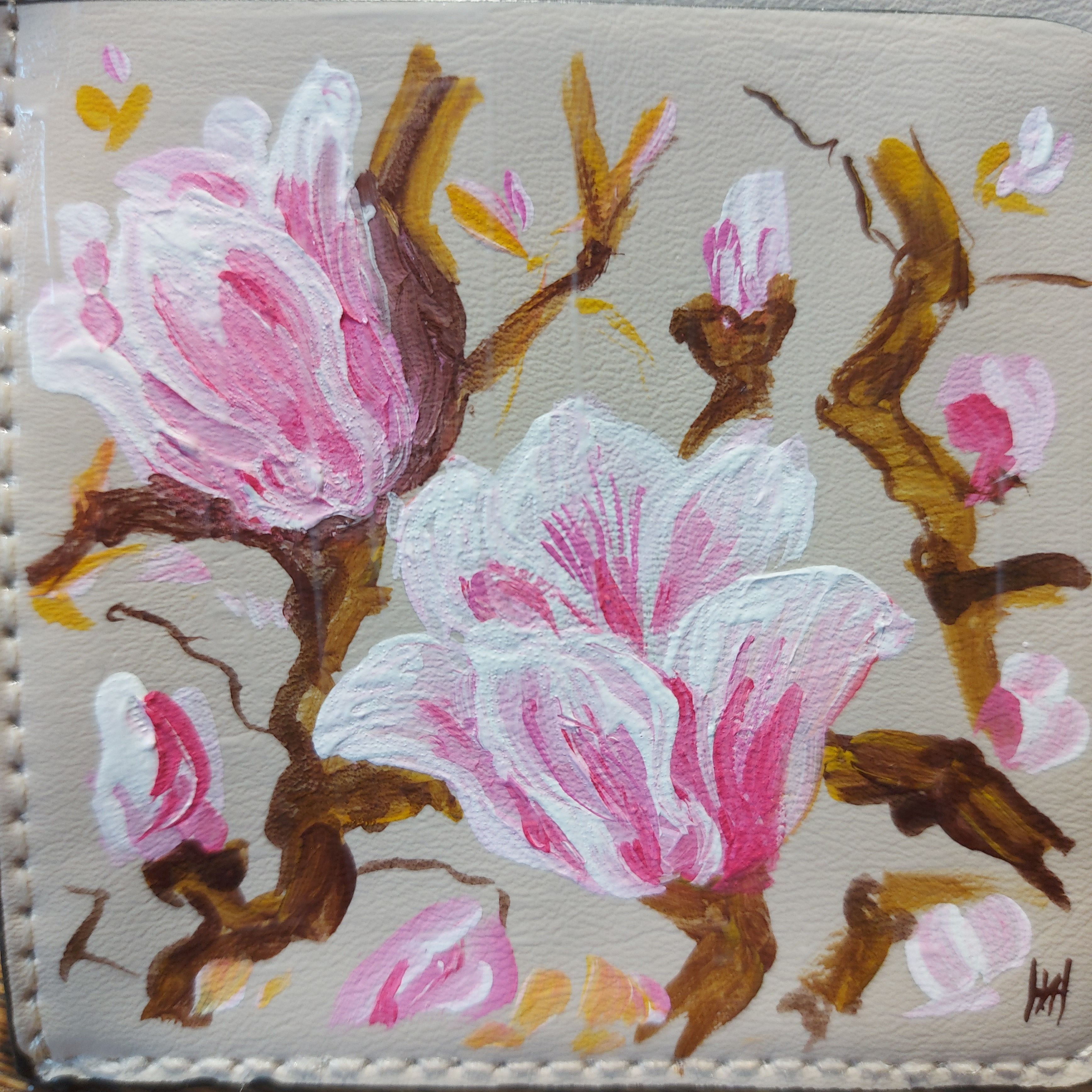 Картхолдер выполнен из искусственной кожи высокого качества с аккуратной проработкой швов . Компактный размер 15 см на 9 см позволяет носить визитницу в любом кармане или сумке. Нежная авторская роспись картхолдера станет эксклюзивным дополнением любого образа. Для сохранения роспись покрыта матовым лаком. Автор Н.Иванова Акрил для изделий из кожи. Лак для изделий из кожи. Внимание! Единственный экземпляр! Повторов не будет!