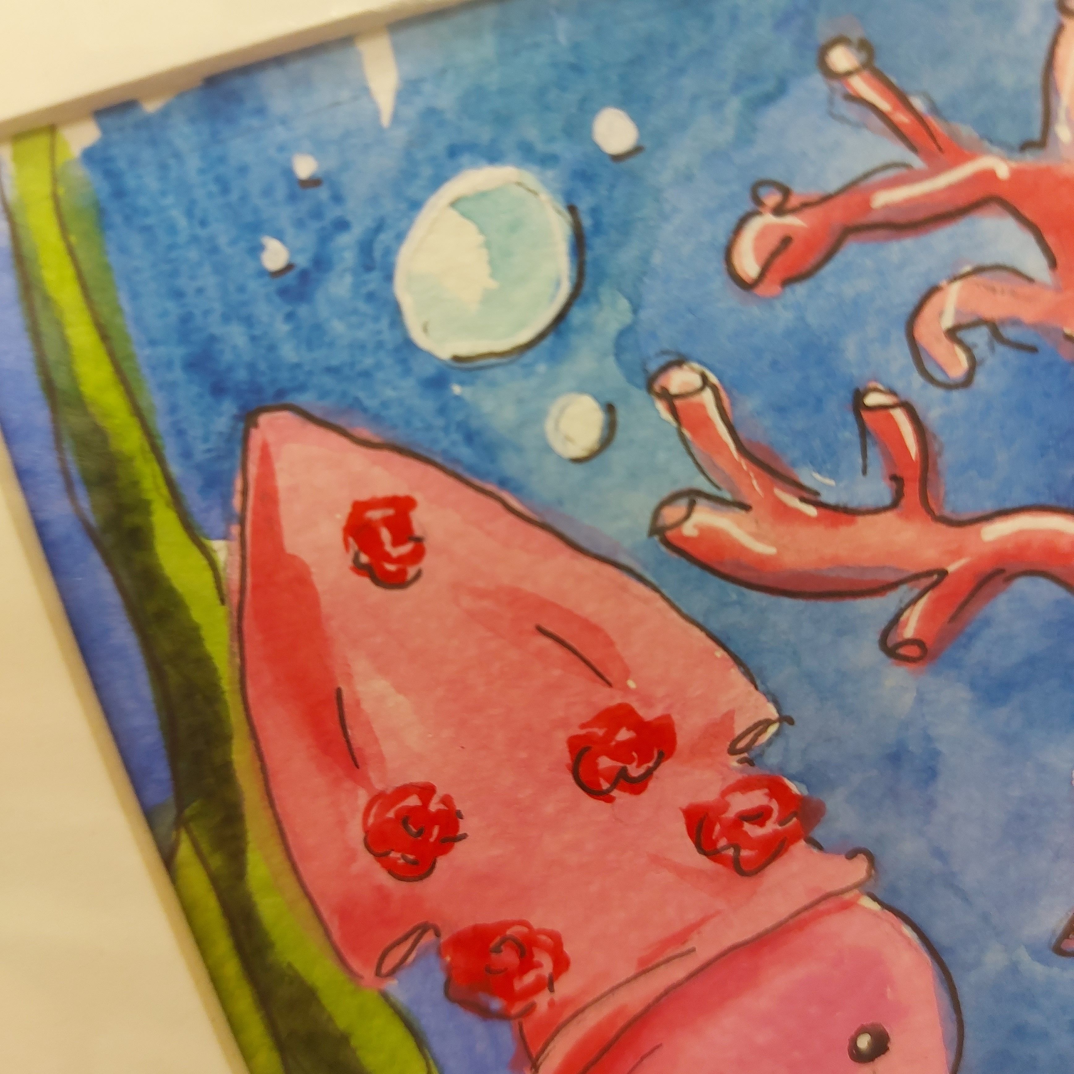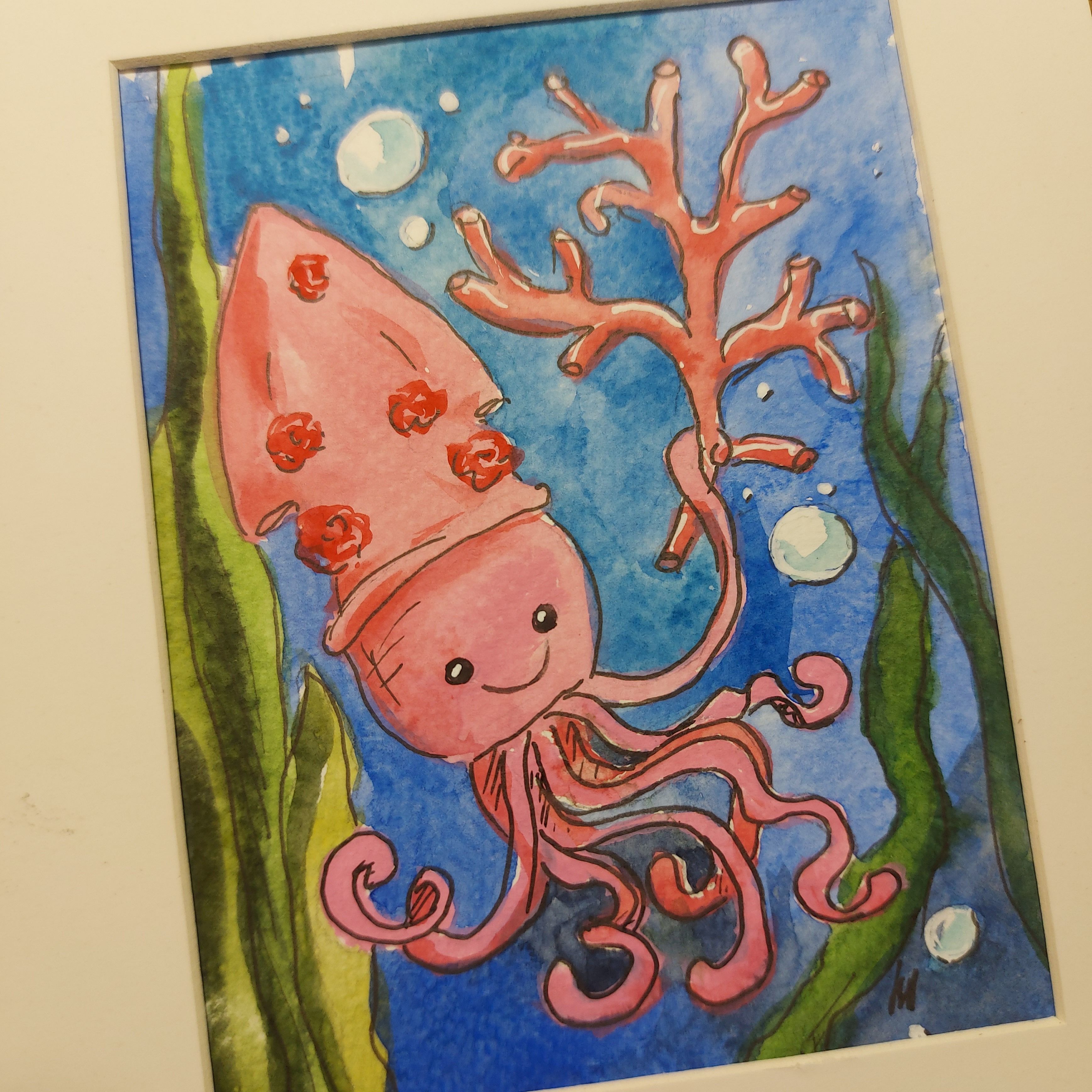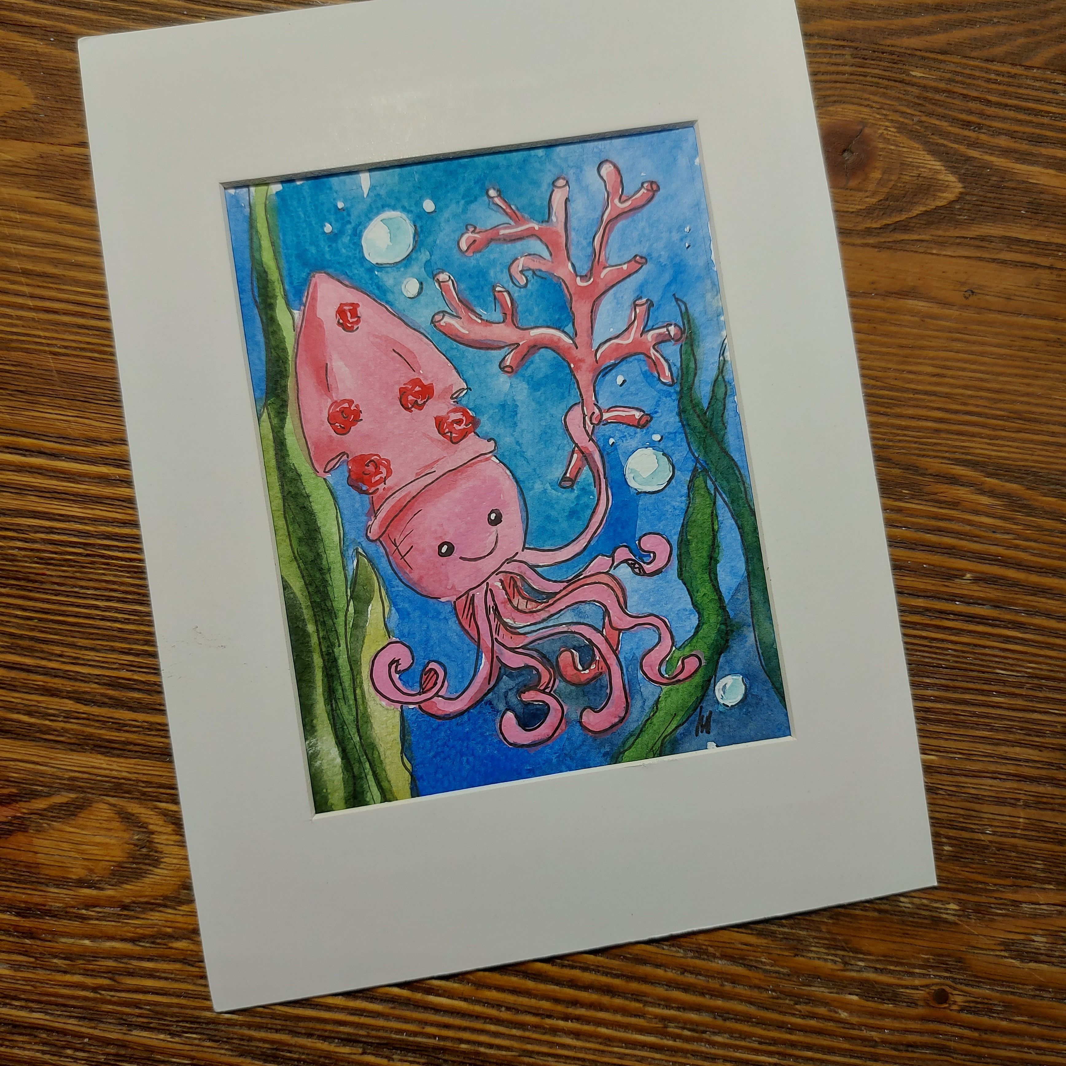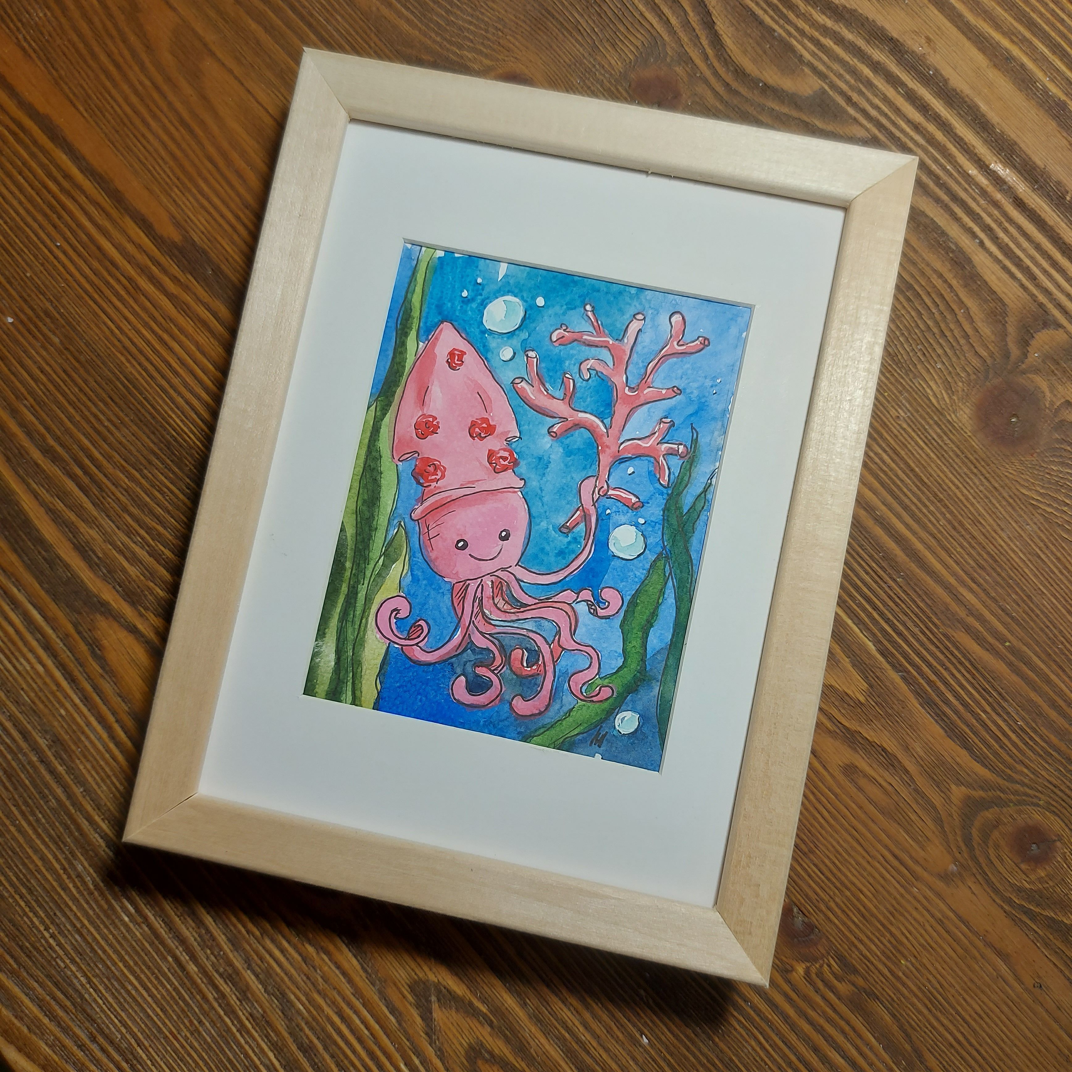 Картина акварельная авторская "Кальмар" размером 15х20 см станет ярким акцентом в вашем интерьере и подарит радость от созерцания прекрасного.
