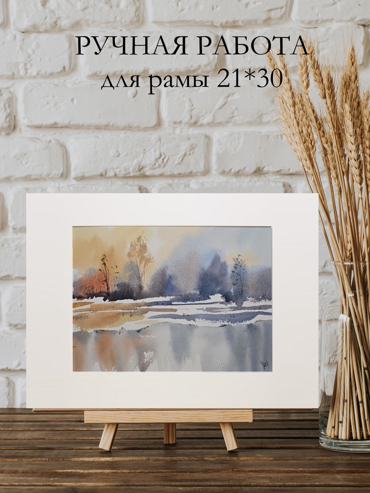Картина оформлена в светлое паспарту и готова к размещению в раме 21*30 см.
