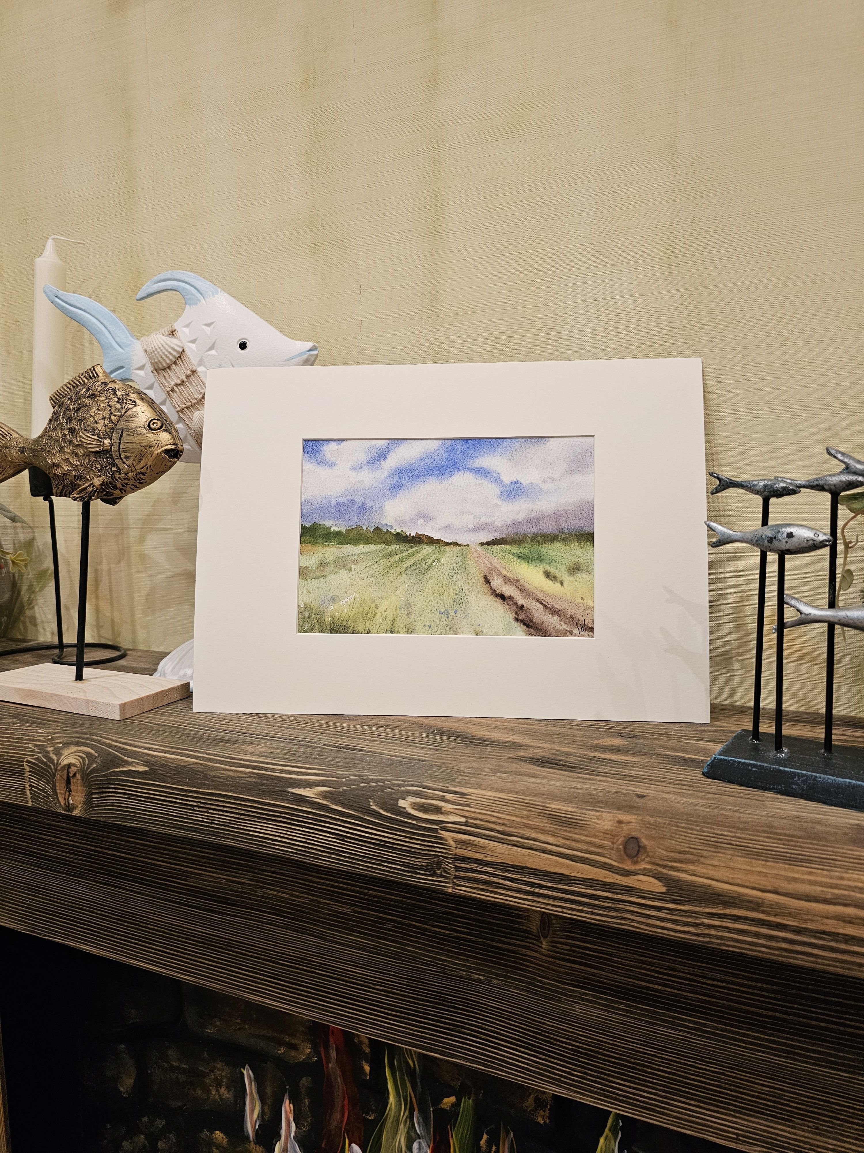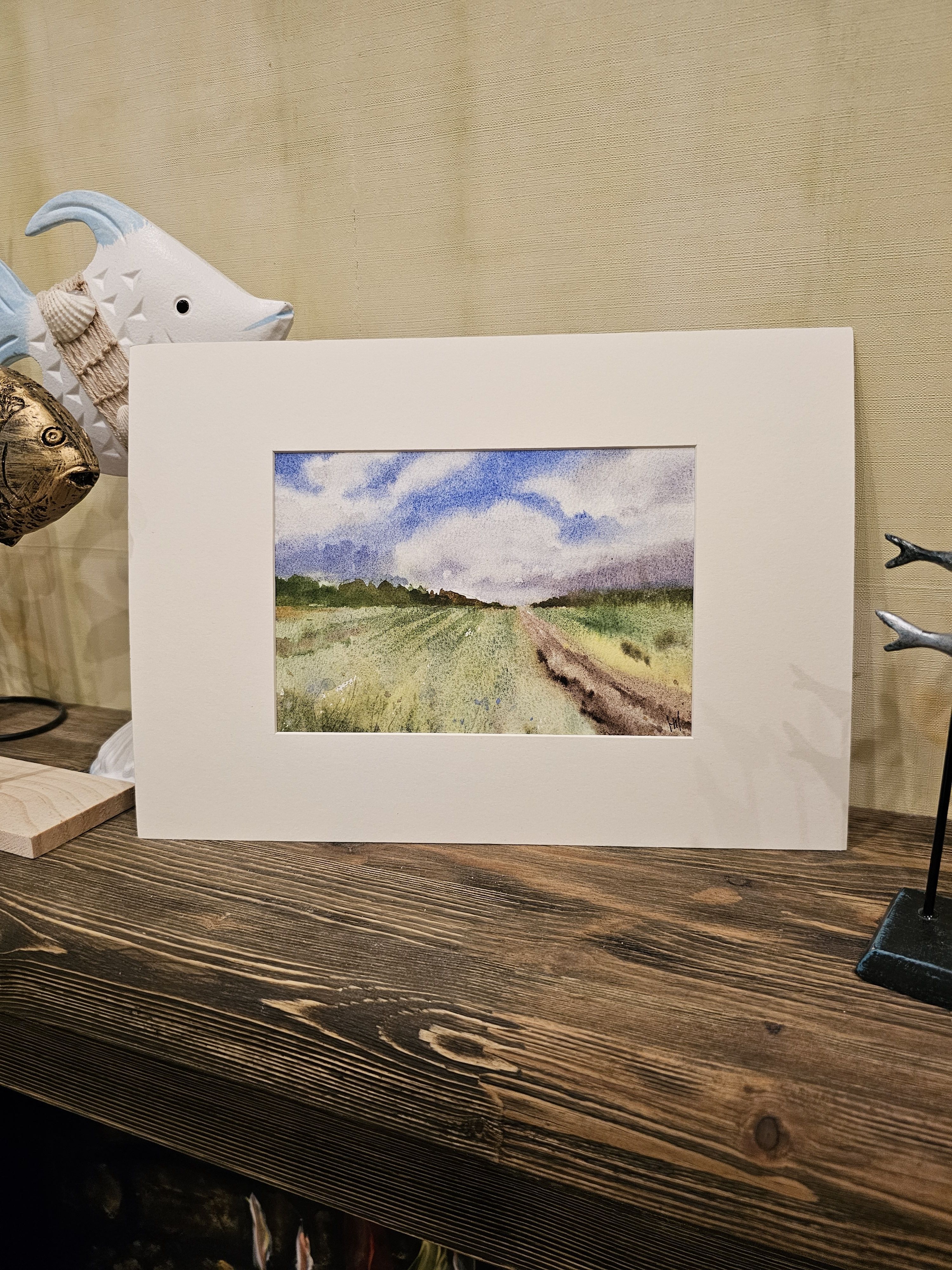 Оформлена картина в светлое паспарту и готова к размещению в раме 21*30 см.