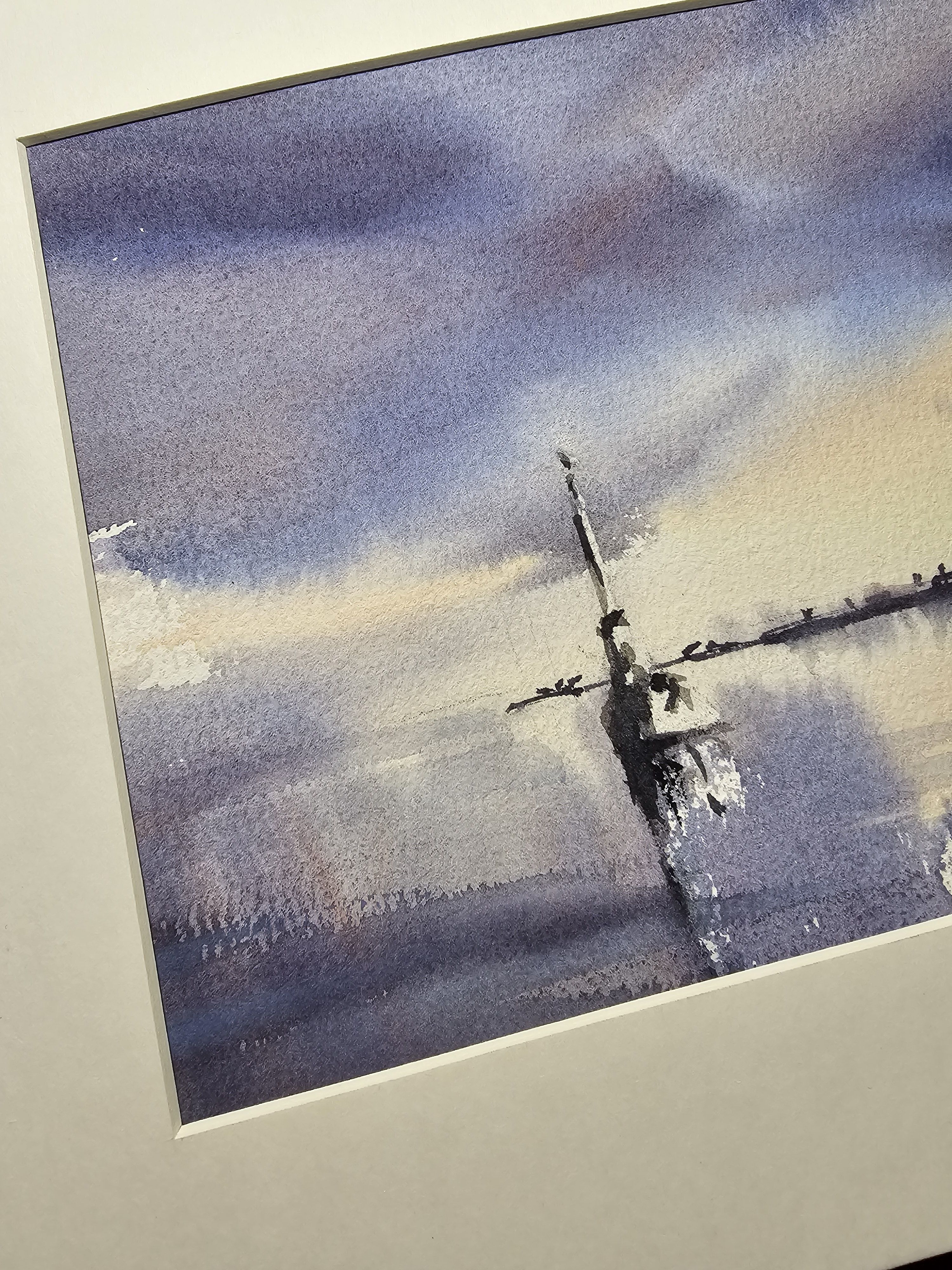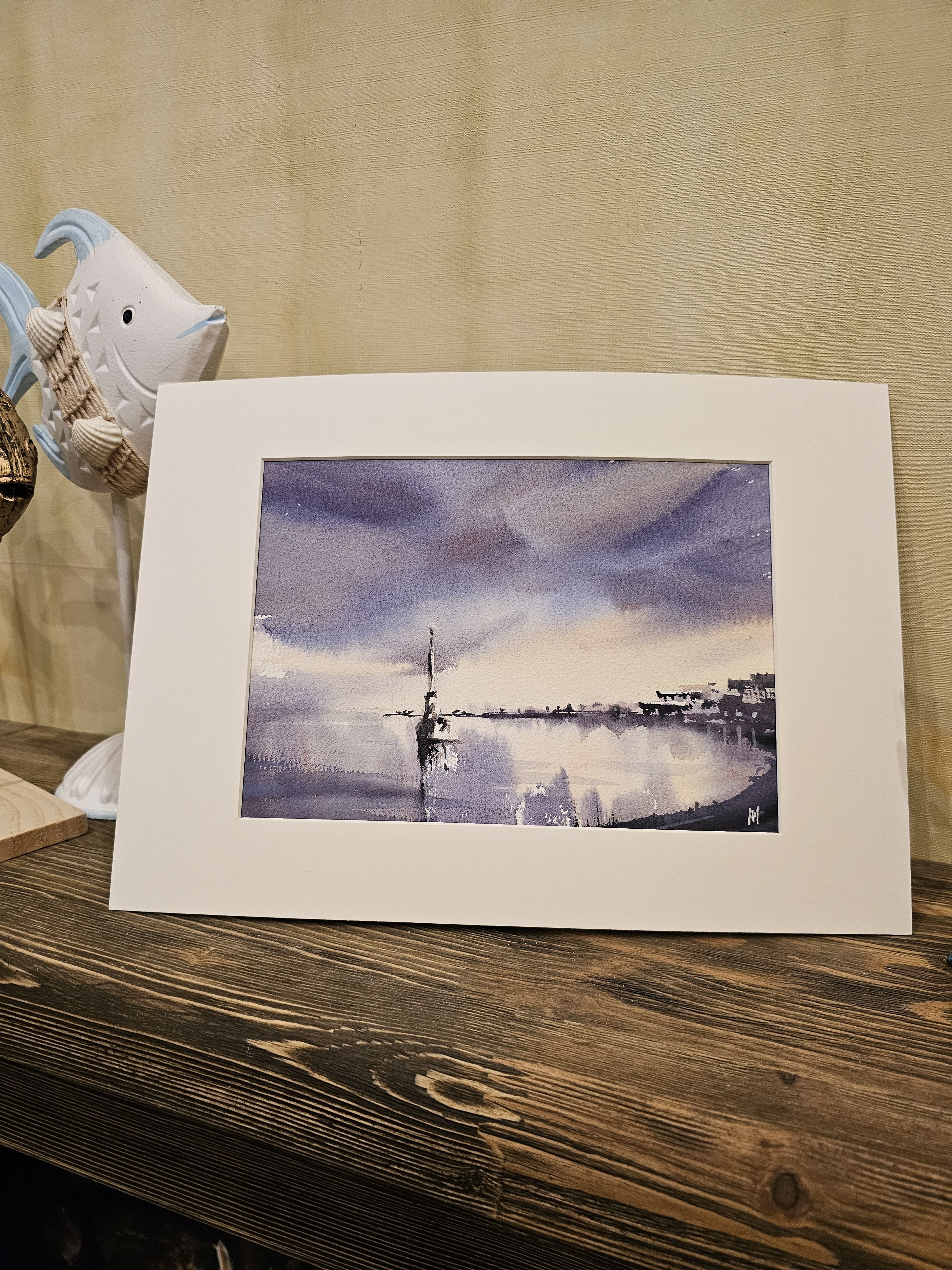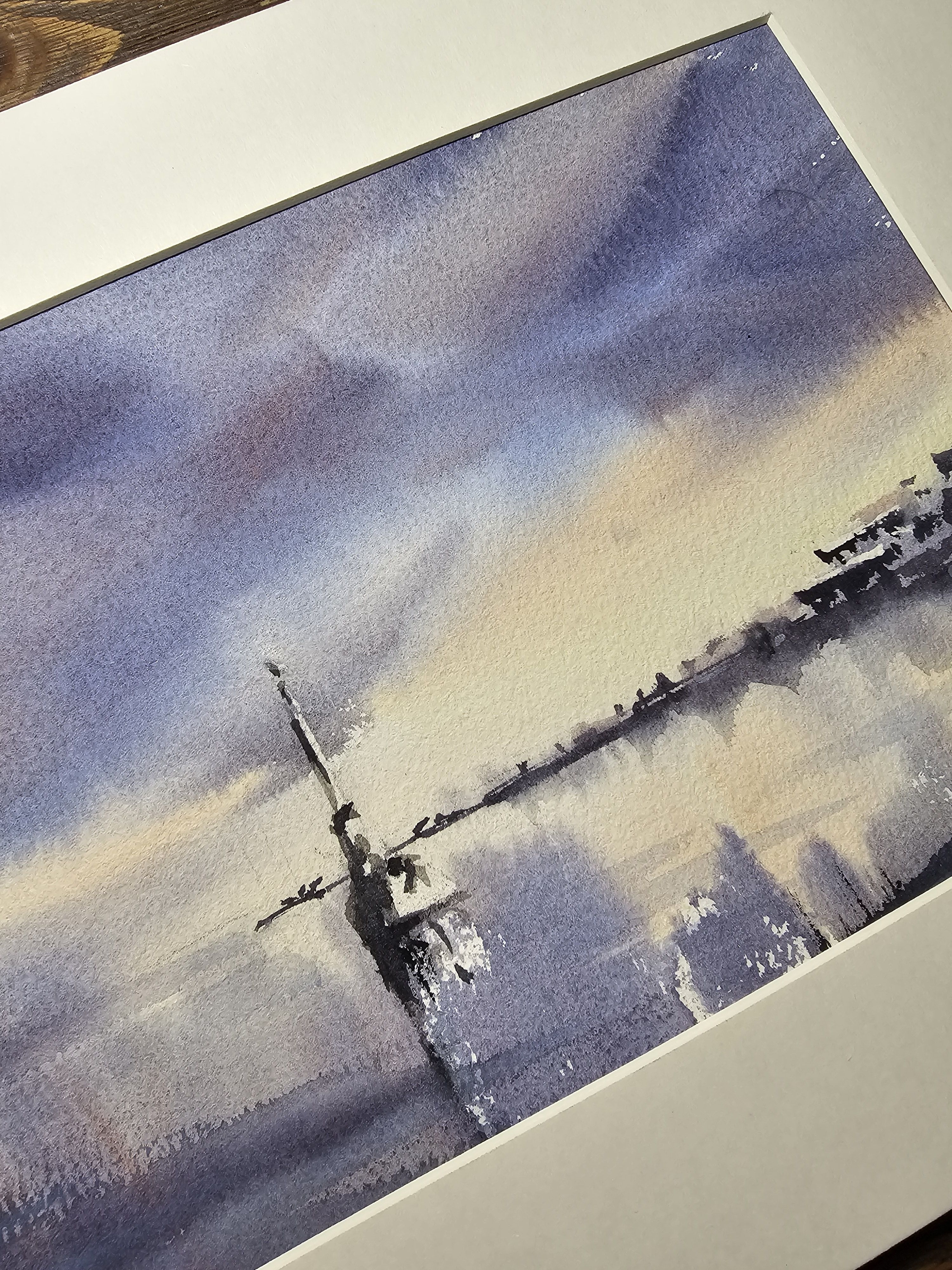 Картина оформлена в светлое паспарту и готова к размещению в раме 21*30 см.