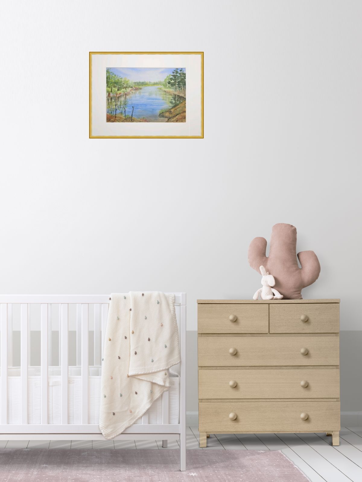 Вам нужно вставить работу в любую рамку размером 40х30 и прекрасный элемент декора Вашей квартиры готов.