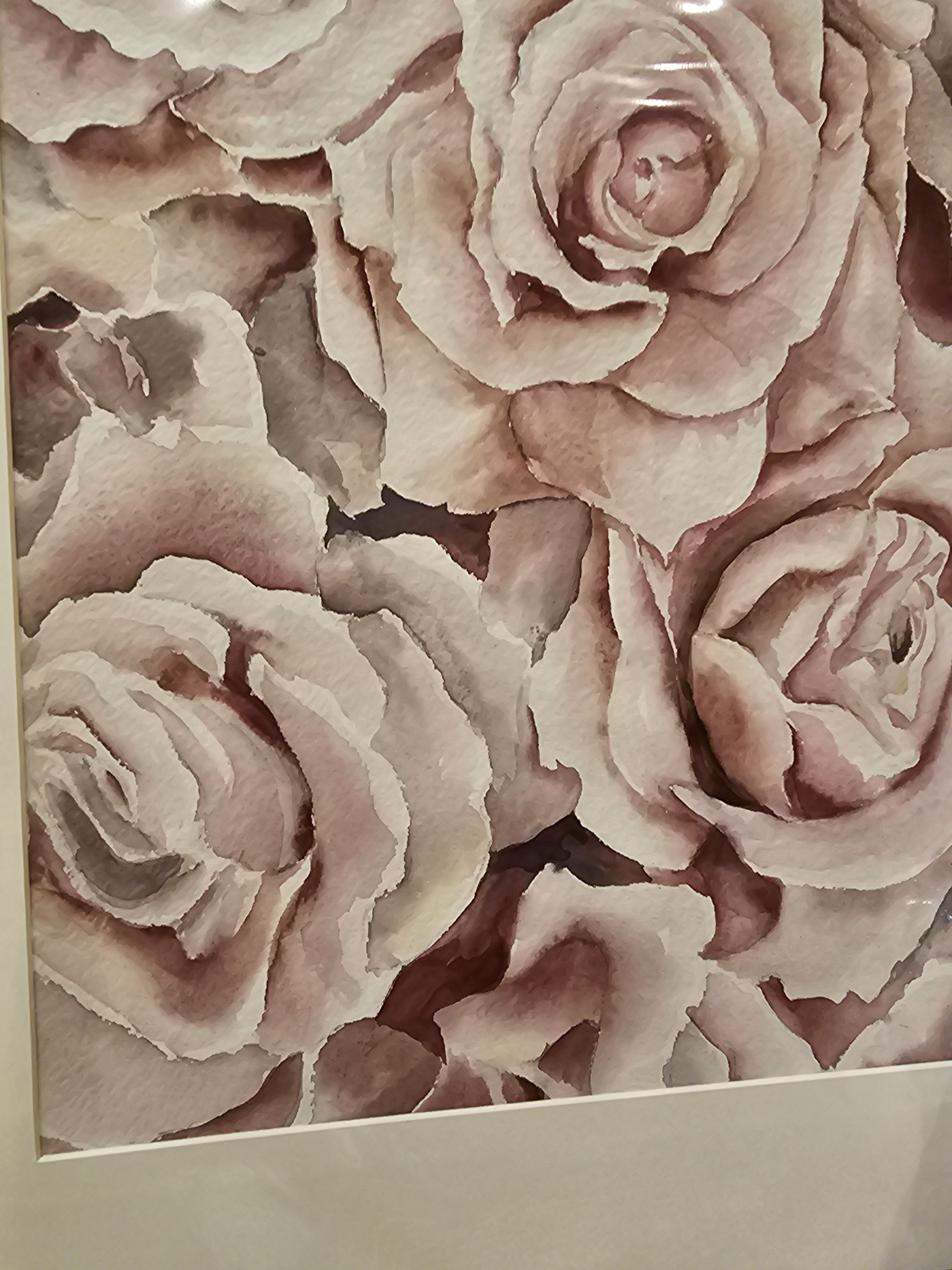 Картина помещена в паспарту белого цвета, подчеркивающее произведение. Общее впечатление такое, что картина предназначена для украшения интерьера, добавляя ему изысканности и нежности.