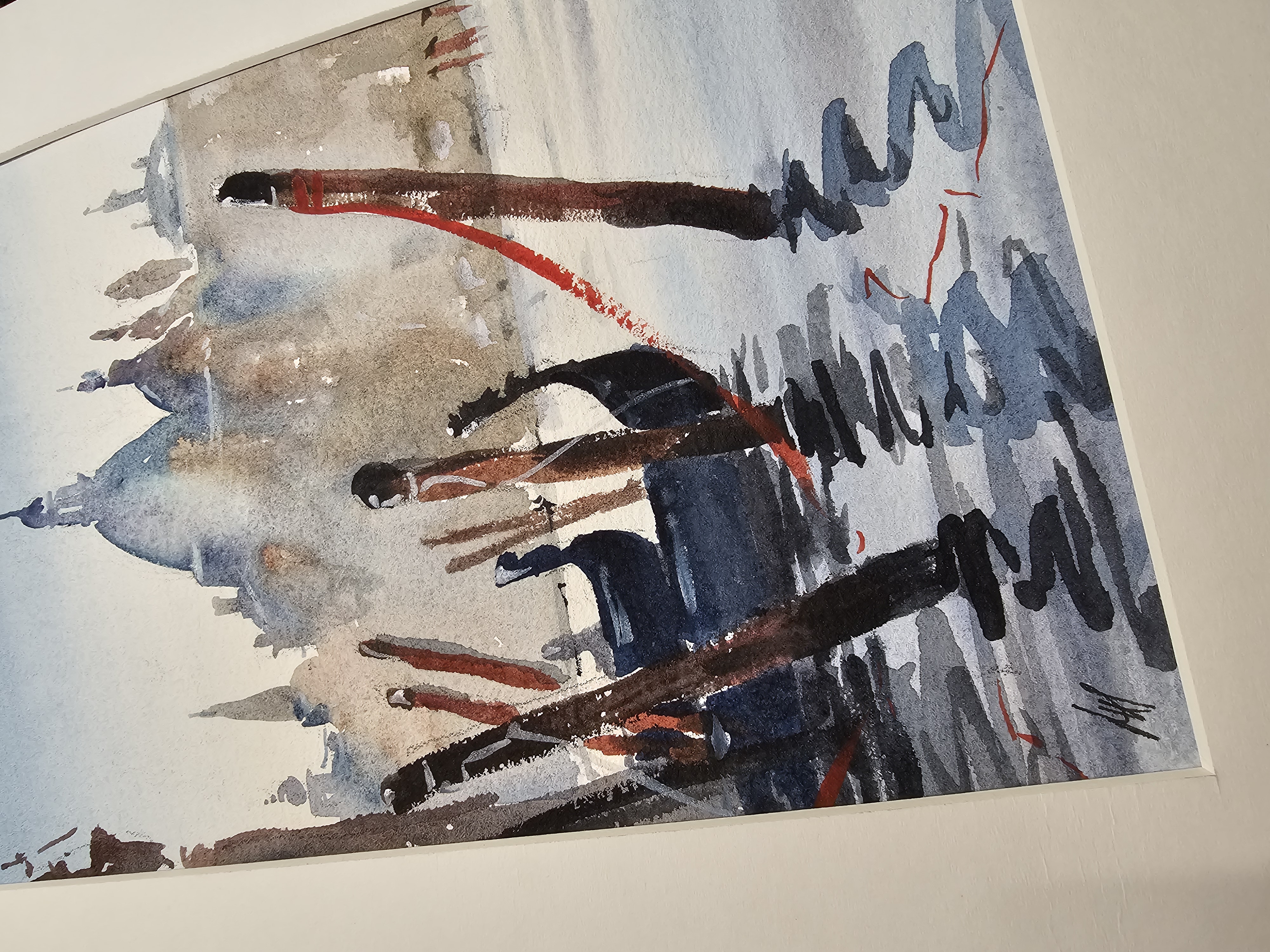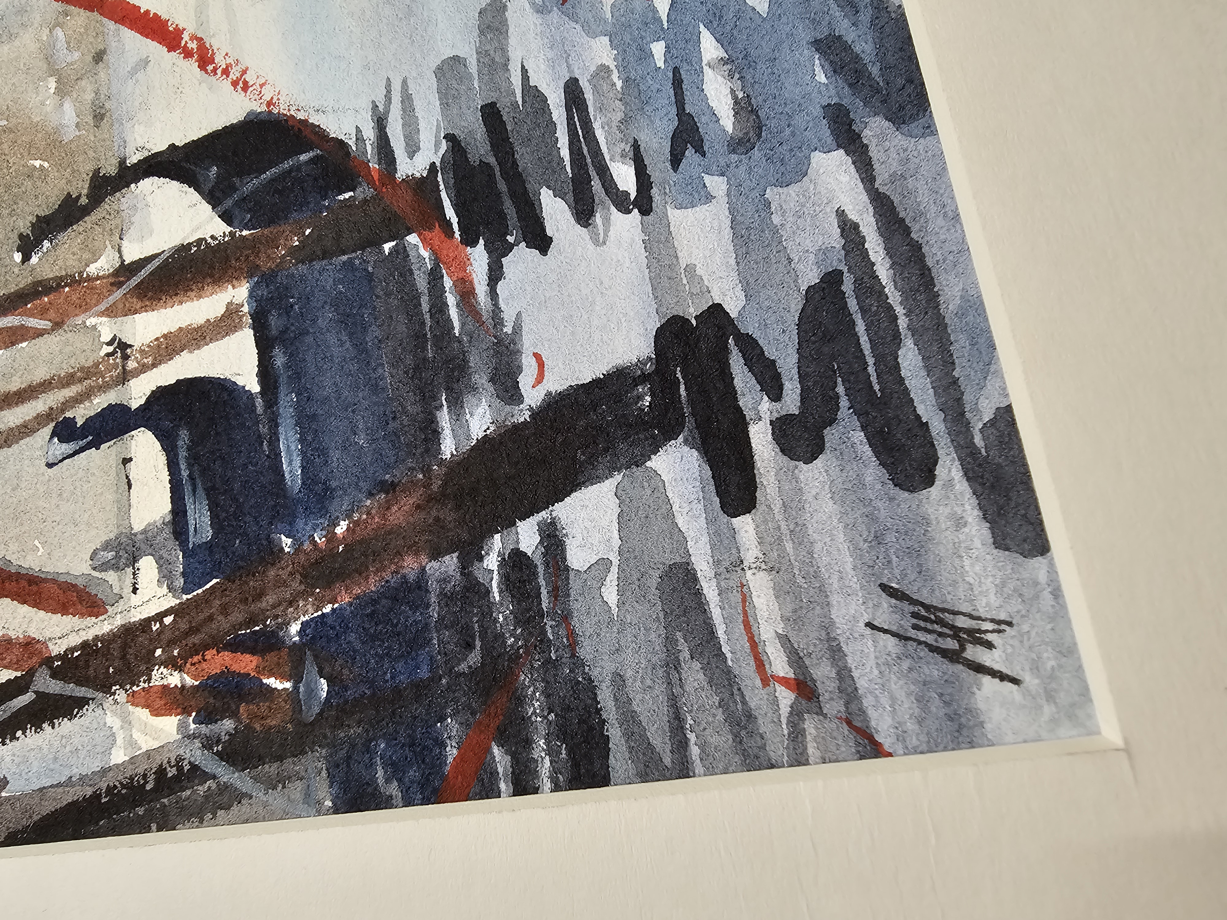 Работа оформлена в светлое паспарту и готова к размещению в раме 21*30 см.