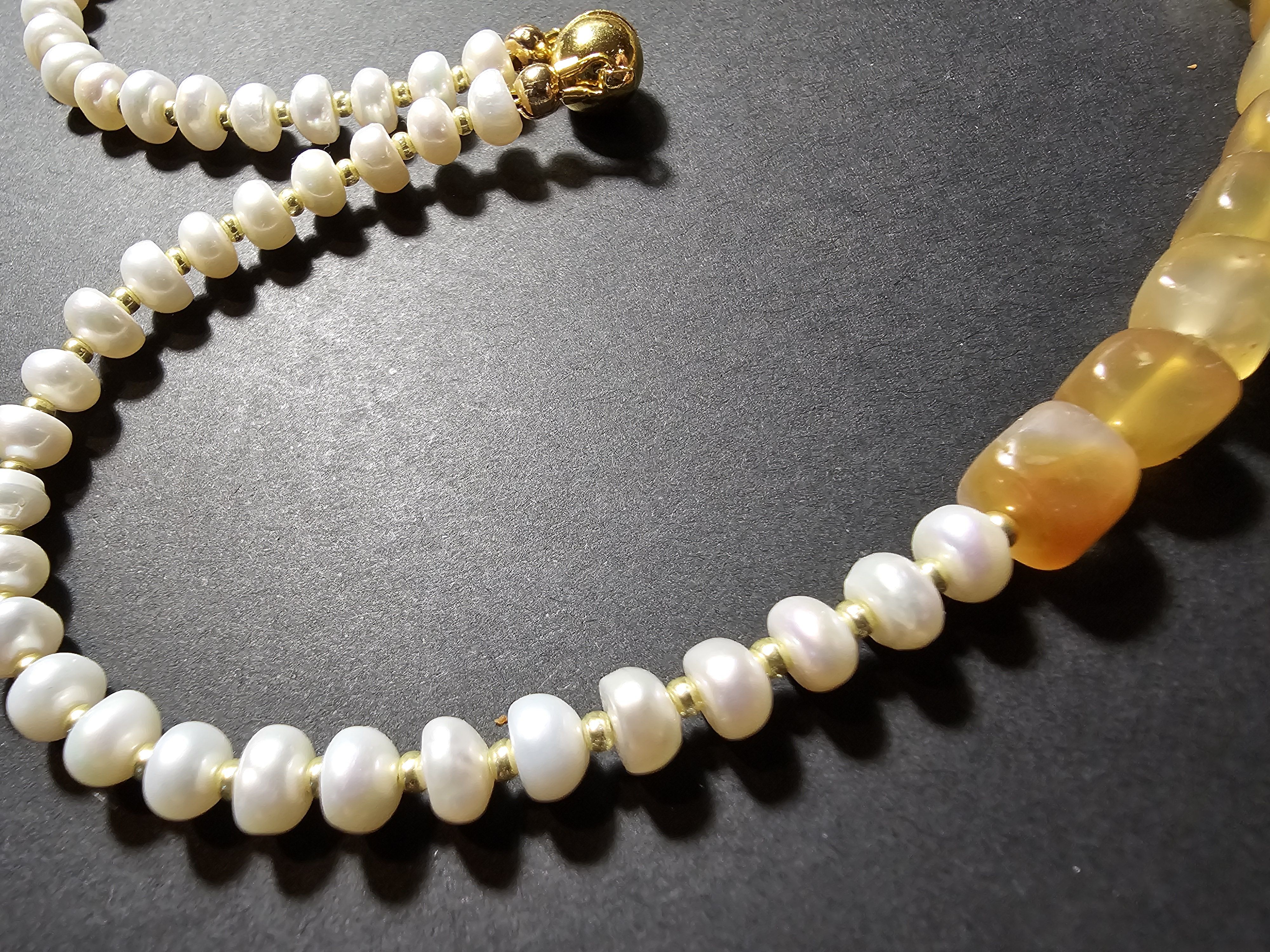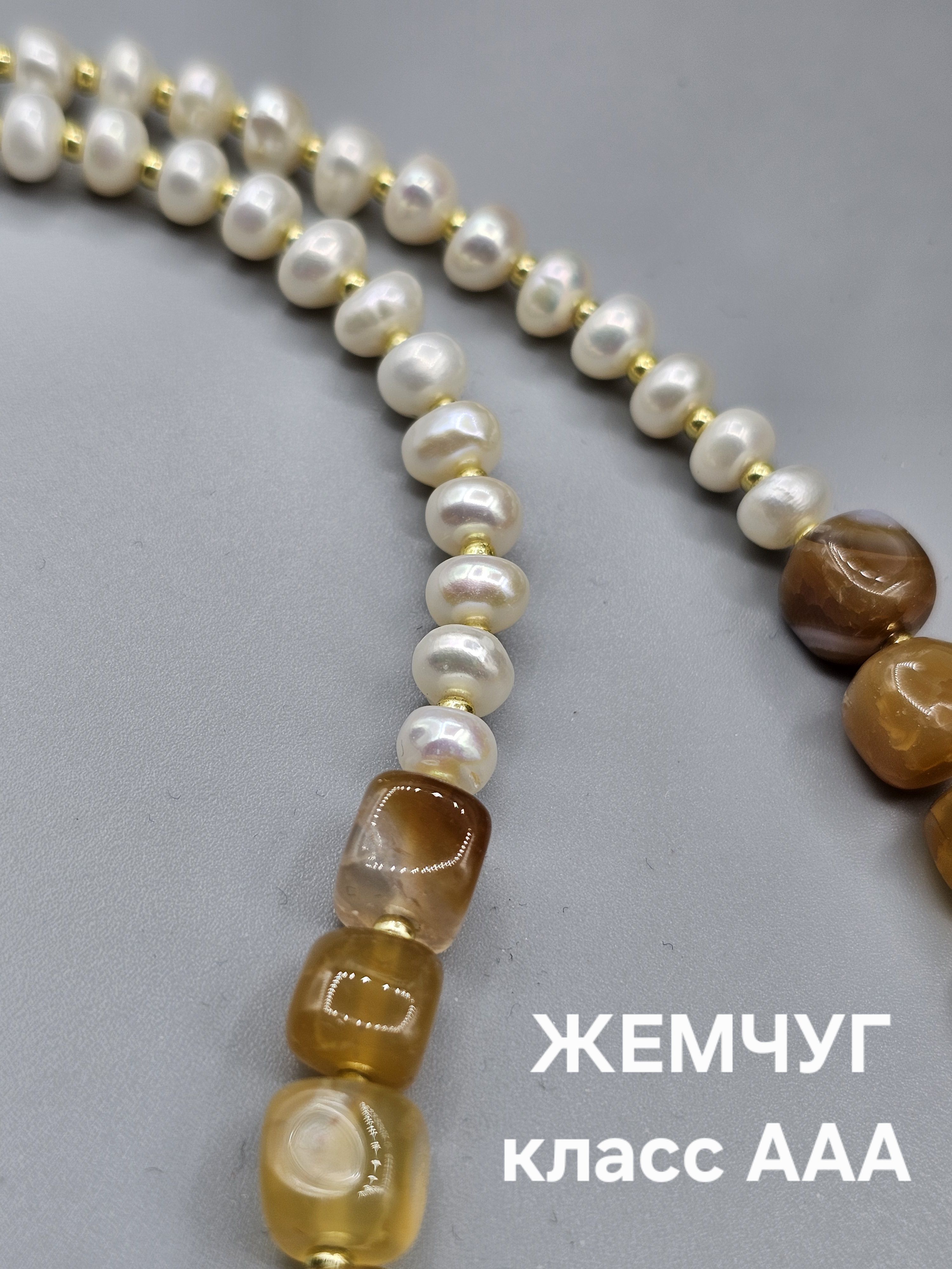 Колье ручной работы "Праздник" - это изысканное украшение, которое станет прекрасным дополнением к вашему образу. Изготовленное из культивированного пресноводного жемчуга и агата кракле, оно сочетает в себе элегантность и утонченность.