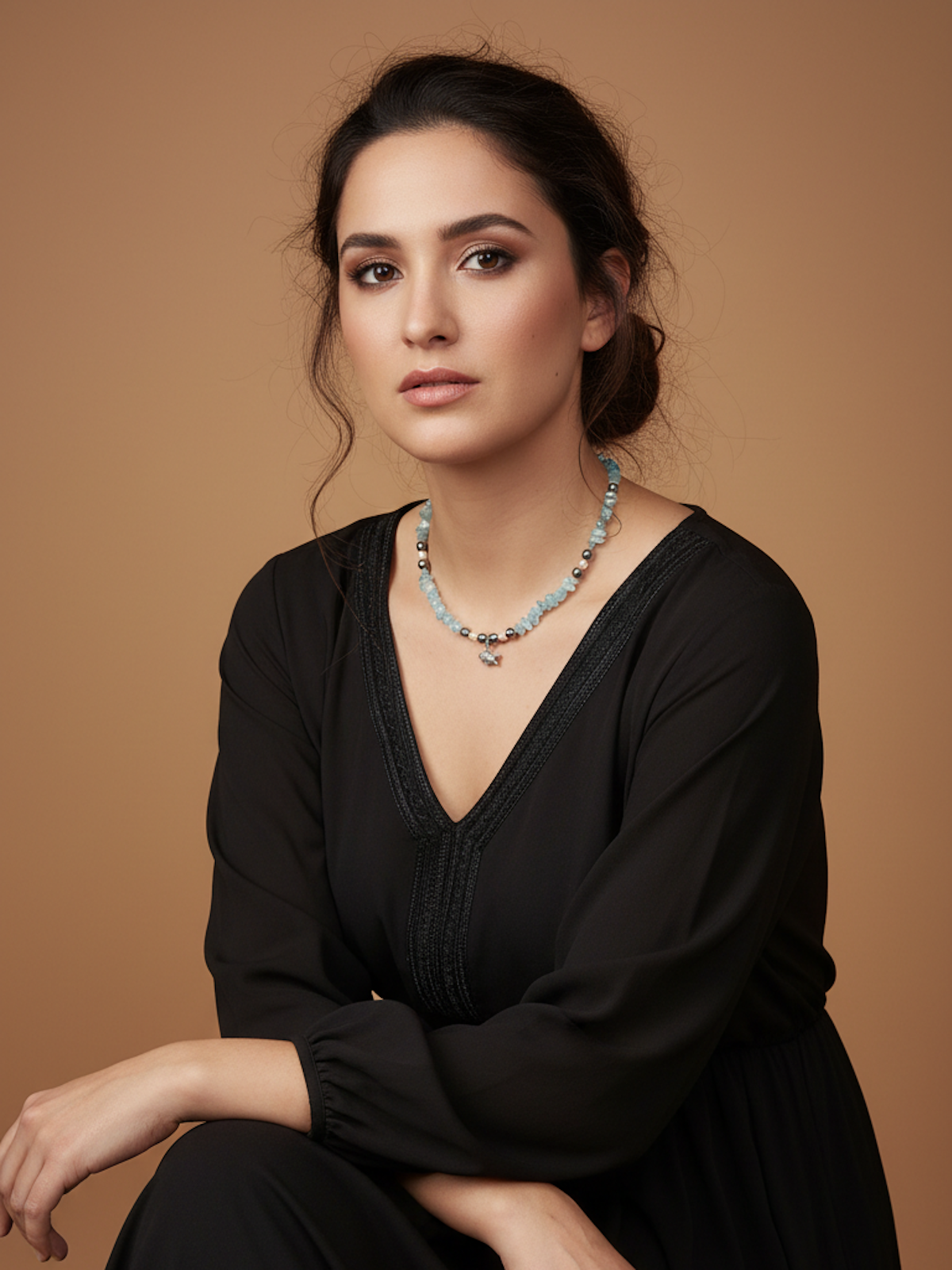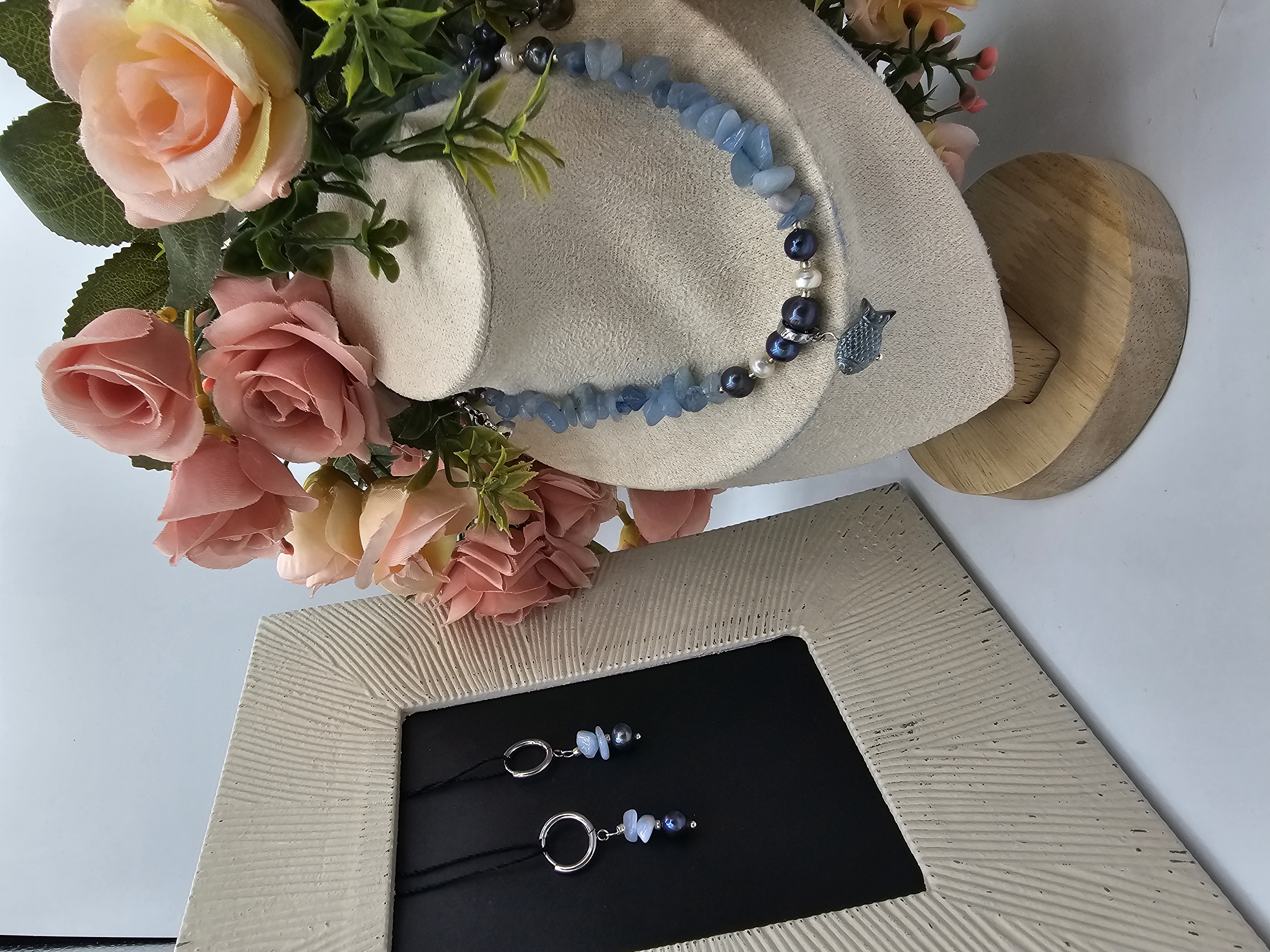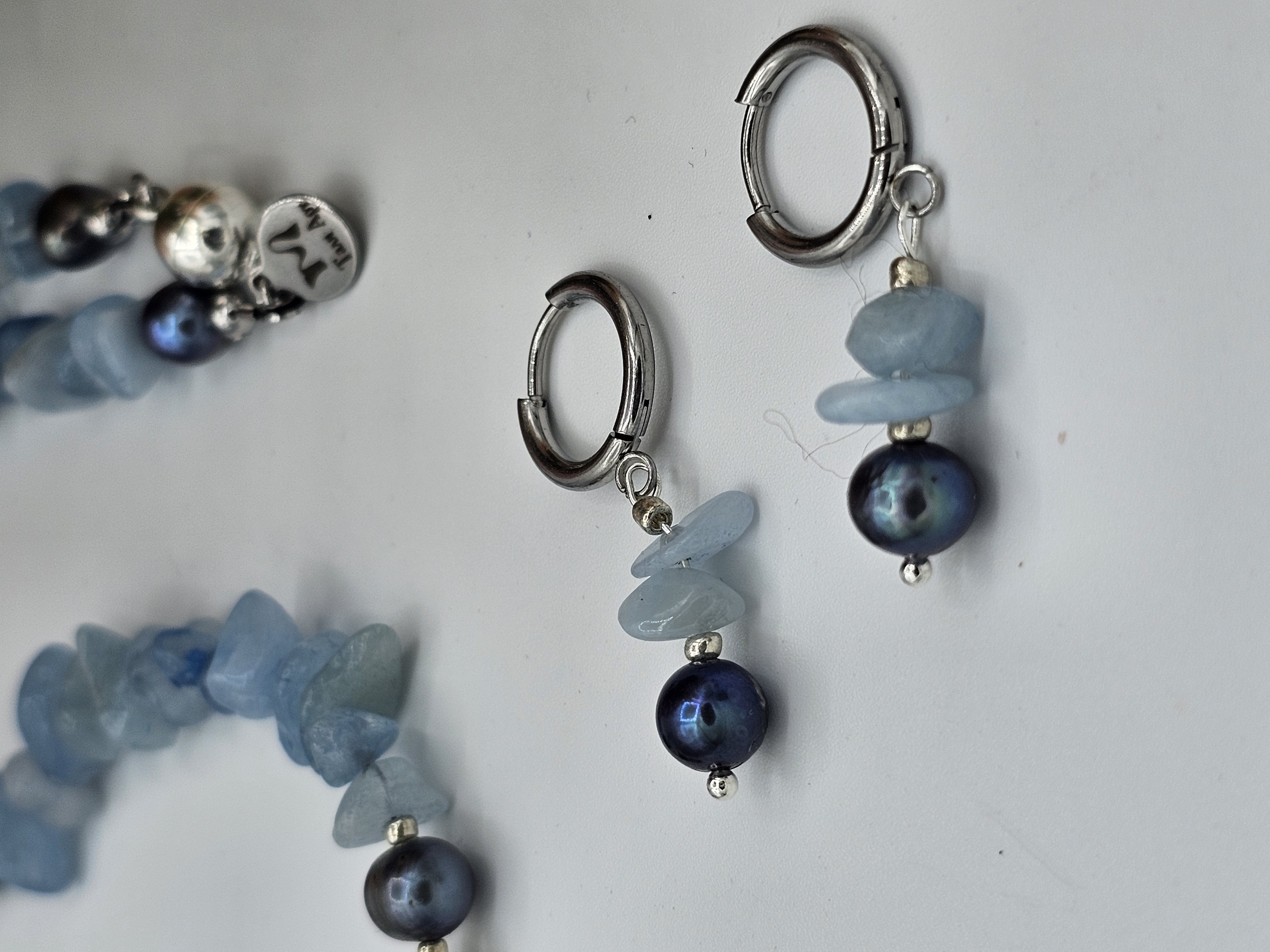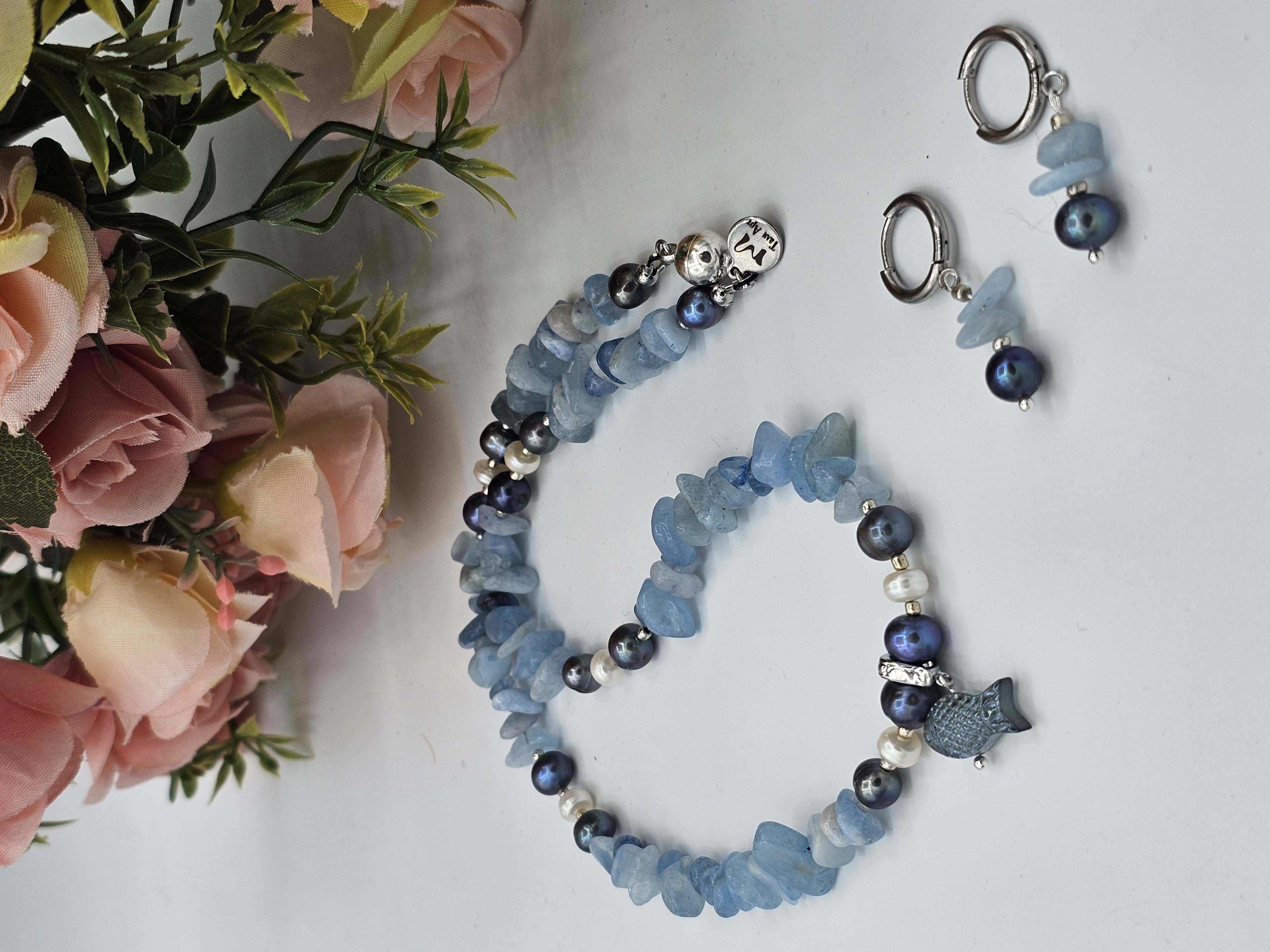 Аквамарин придает украшению неповторимый блеск и глубину, а культивированный речной жемчуг добавляет изысканности и роскоши.