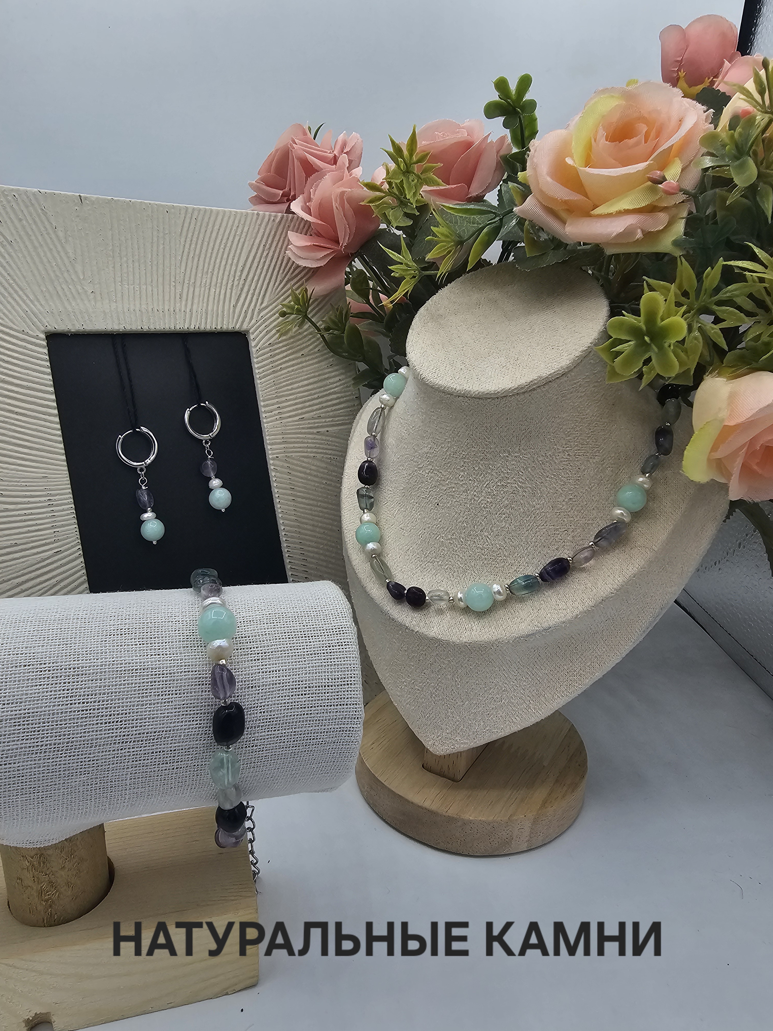 Материал натурального происхождения гарантирует долгий срок службы и безопасность кожи. Привлекательный внешний вид и продуманный дизайн сделают этот комплект любимым аксессуаром даже самой требовательной модницы. Подходит для тех, кто предпочитает выделиться среди стандартных решений.