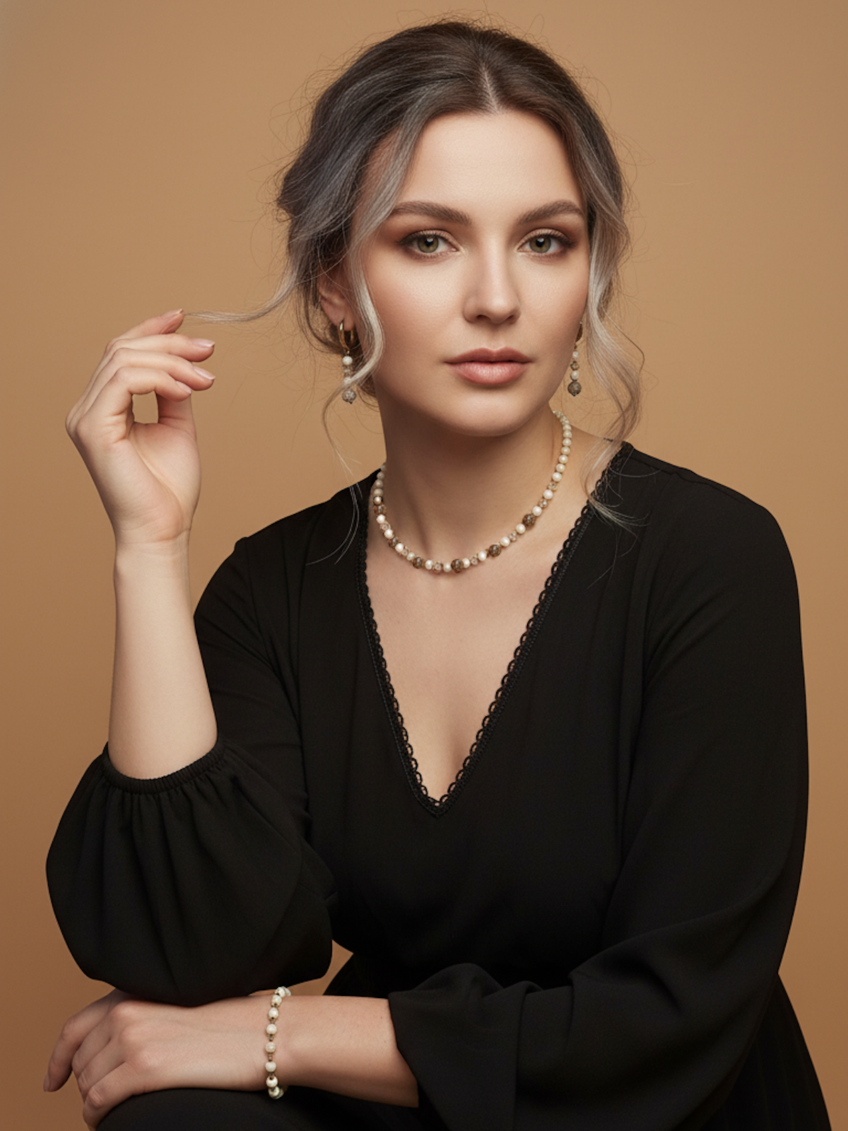 Украшения представлены в подарочной коробке и сопровождаются мешочком на кулиске для хранения. Универсальный стиль и экологичные материалы делают этот набор практичным выбором для современной женщины.