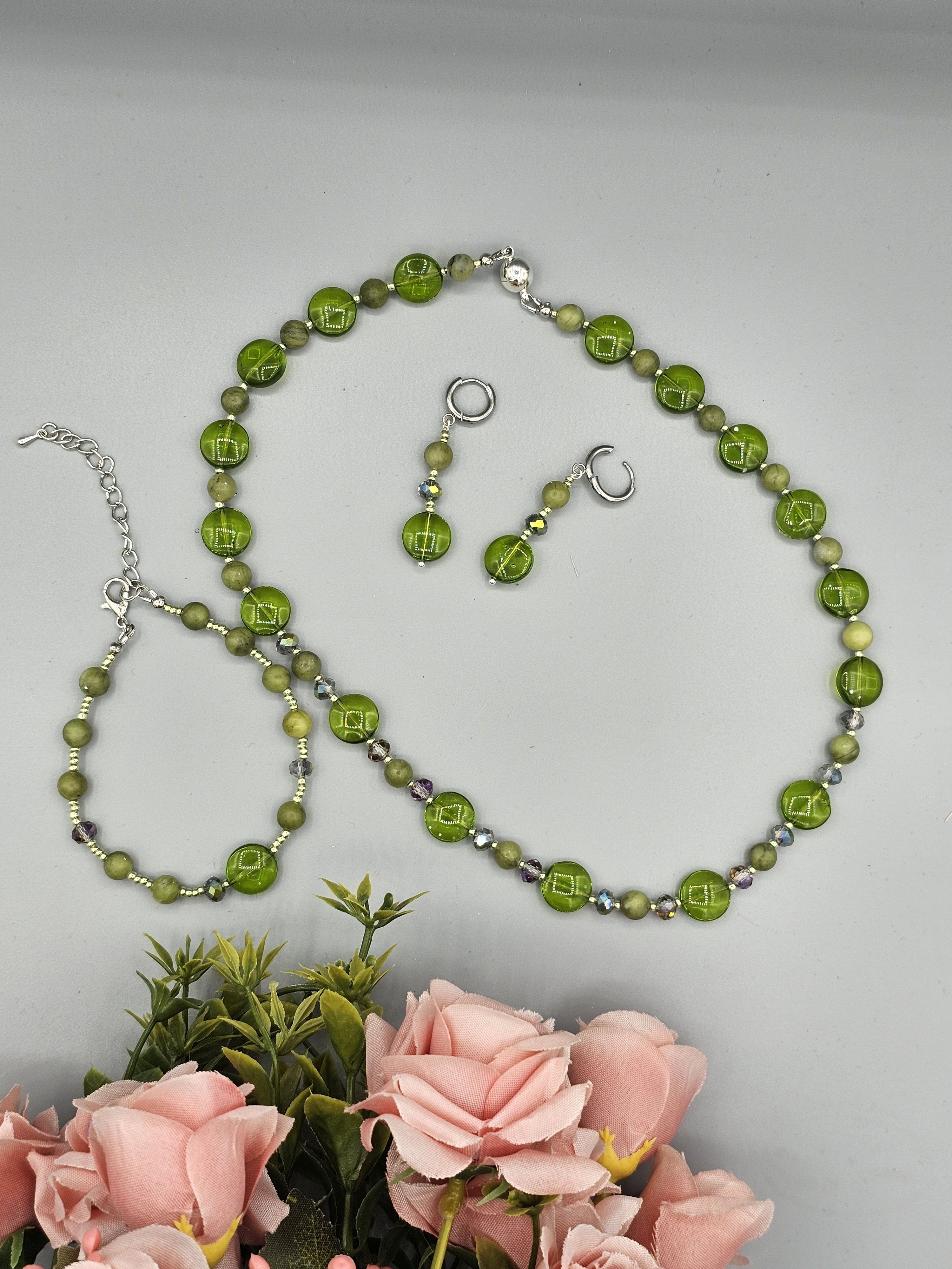 Колье и браслет ручной работы из Халцедона, Австрийского хрусталя, крупного бисера и Чешского стекла плоской круглой формы . Комплект яркий и в тоже время очень нежный! В подарок Вы получите серьги в том же стиле, мешочек для хранения и упаковочную коробку.