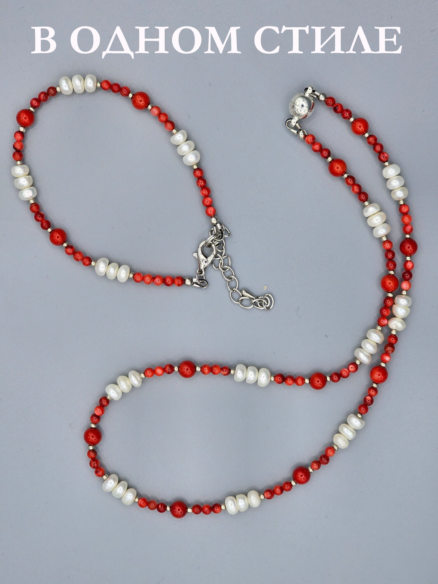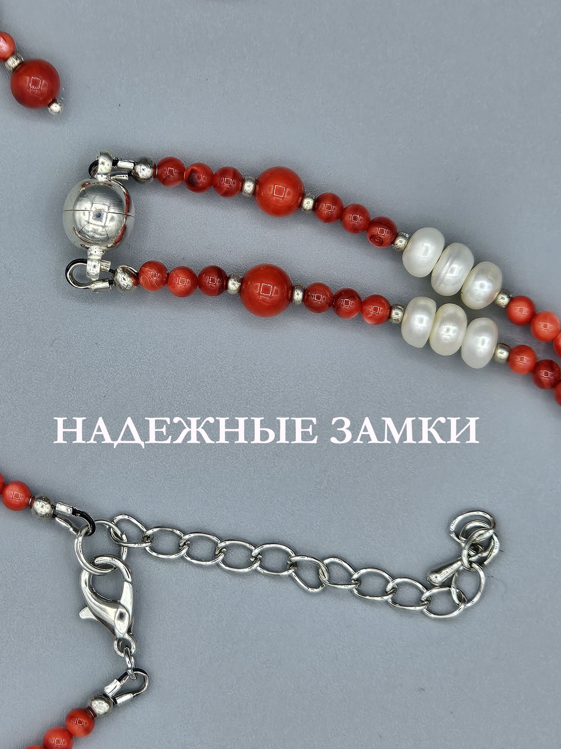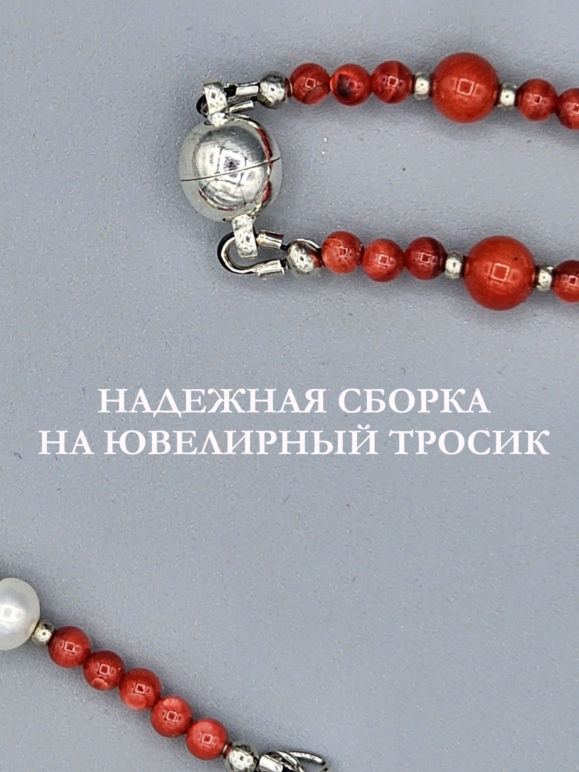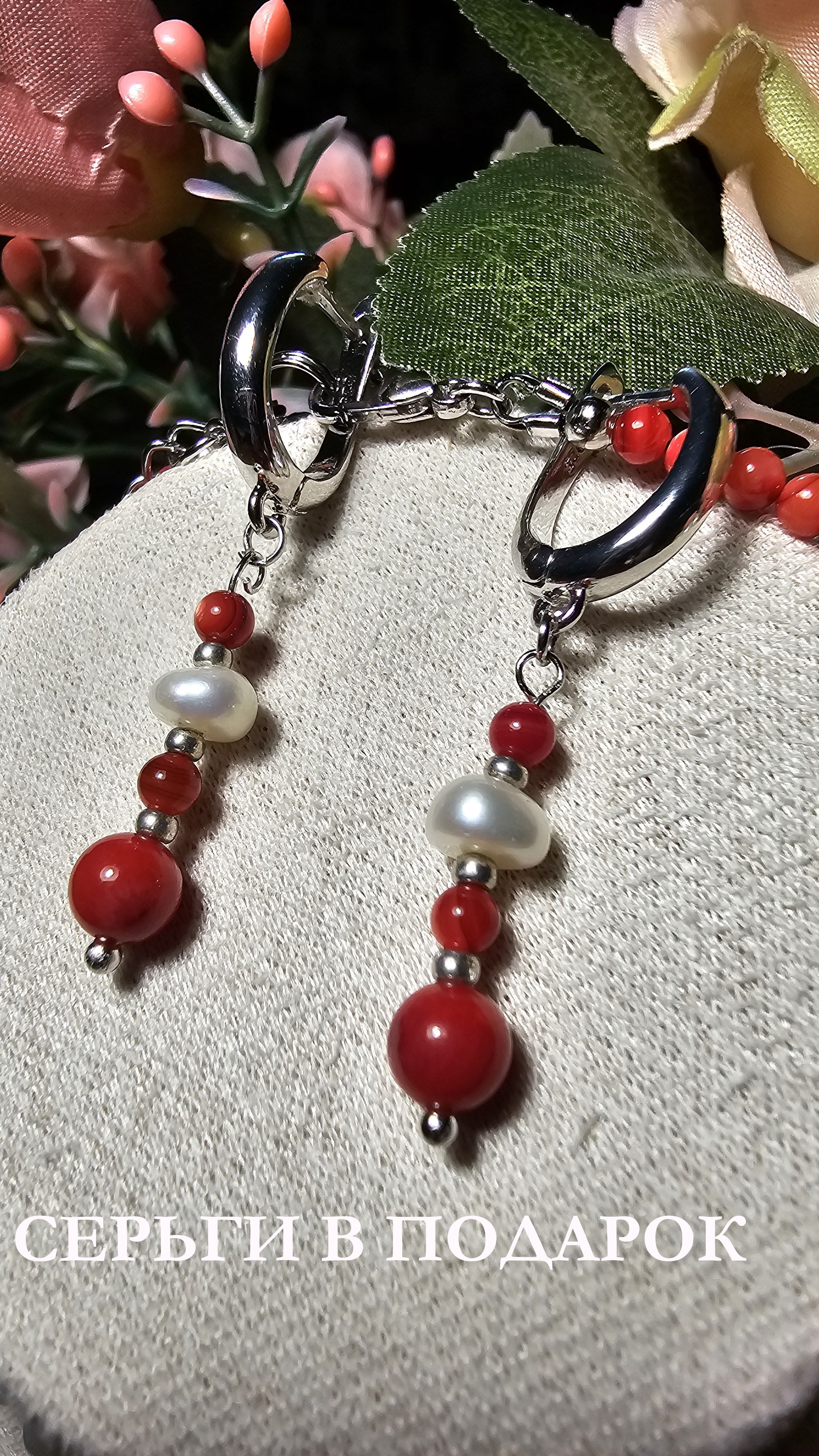 Колье и браслет ручной работы из натурального жемчуга, алого Коралла и бисера. Яркий, дерзкий и в тоже время очень нежный!