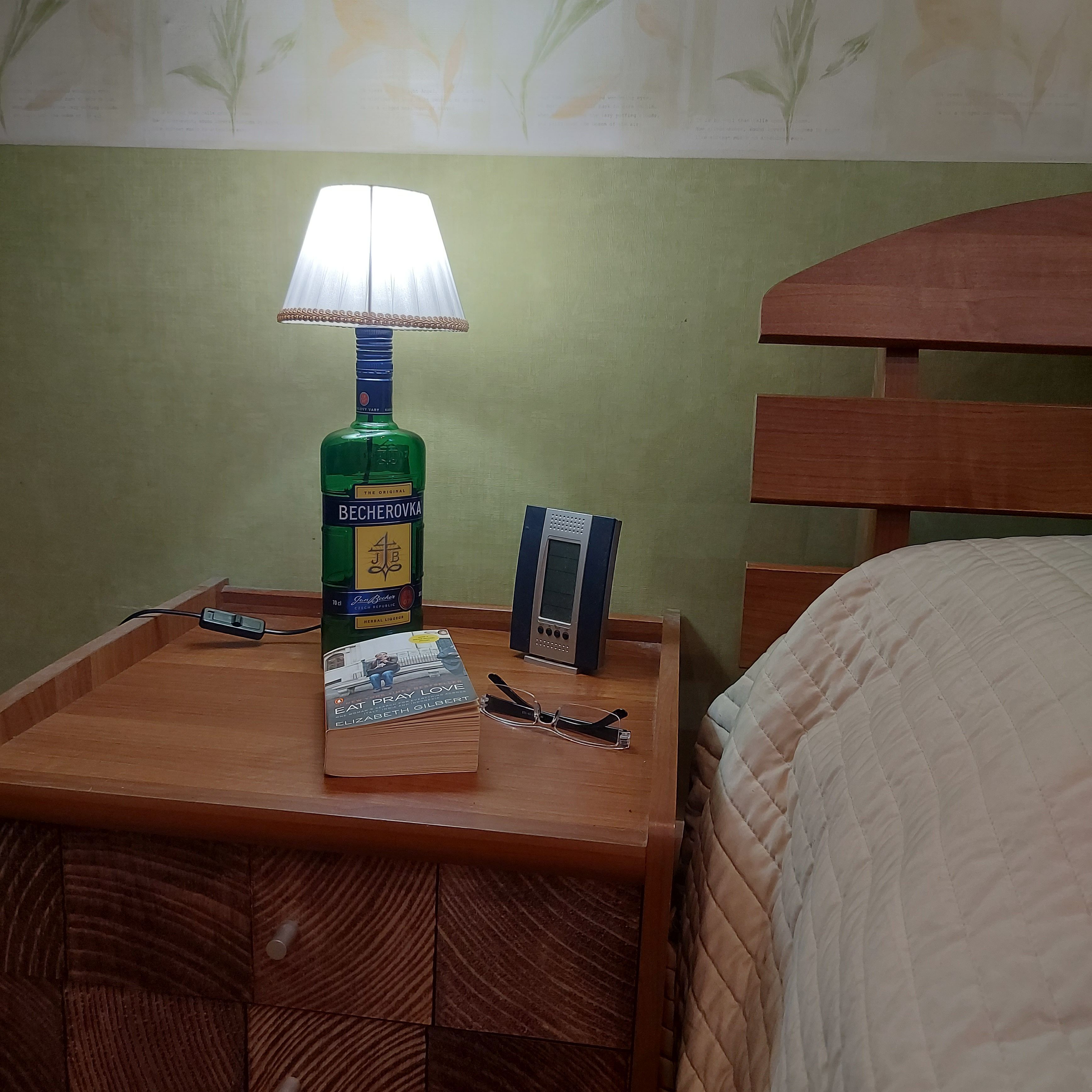 Лампа настольная "Бехеровка классическая" - это авторский светильник ручной работы, созданный из фирменной бутылки Beherovka и классического небольшого абажура. Благодаря этому, каждый экземпляр уникален и неповторим.