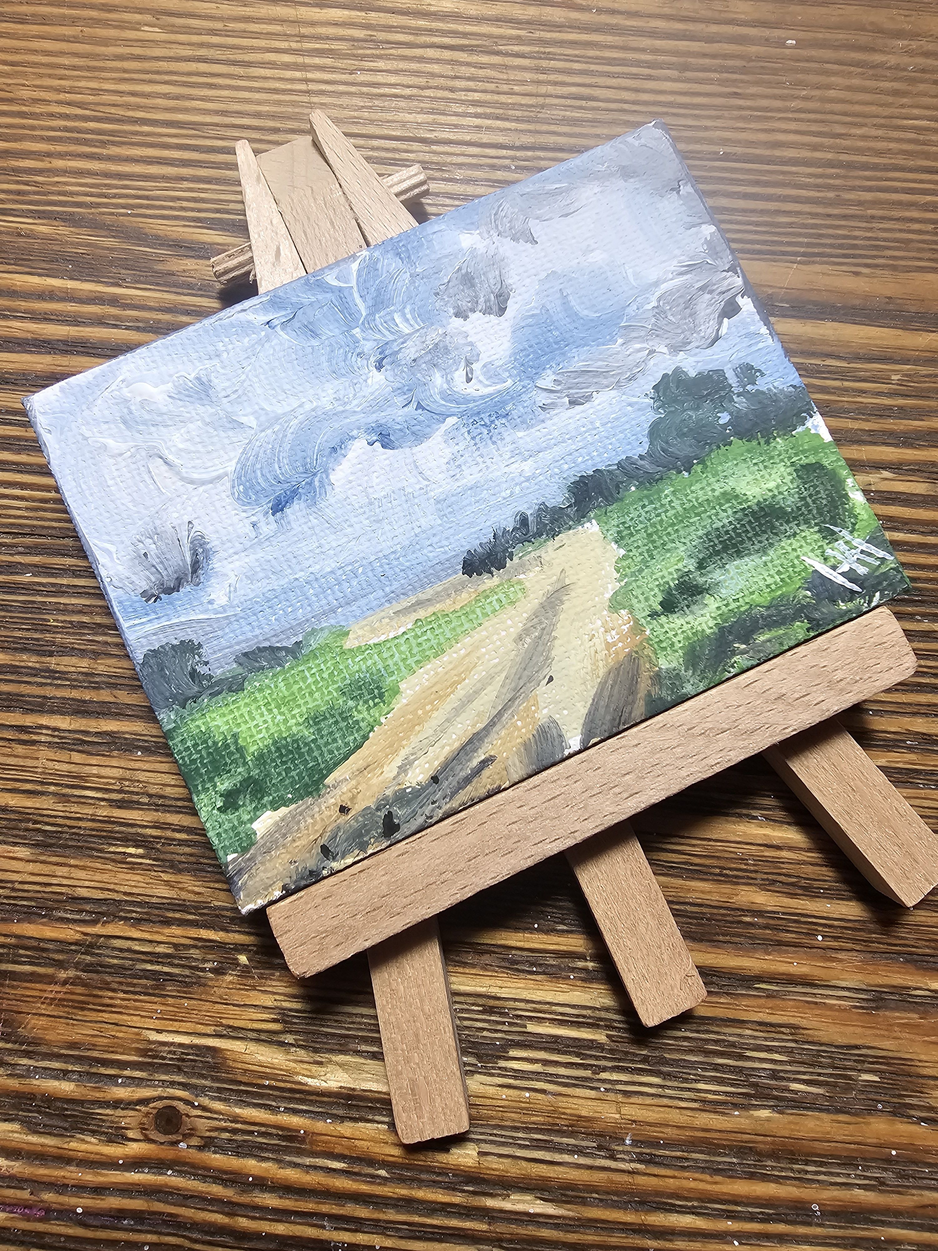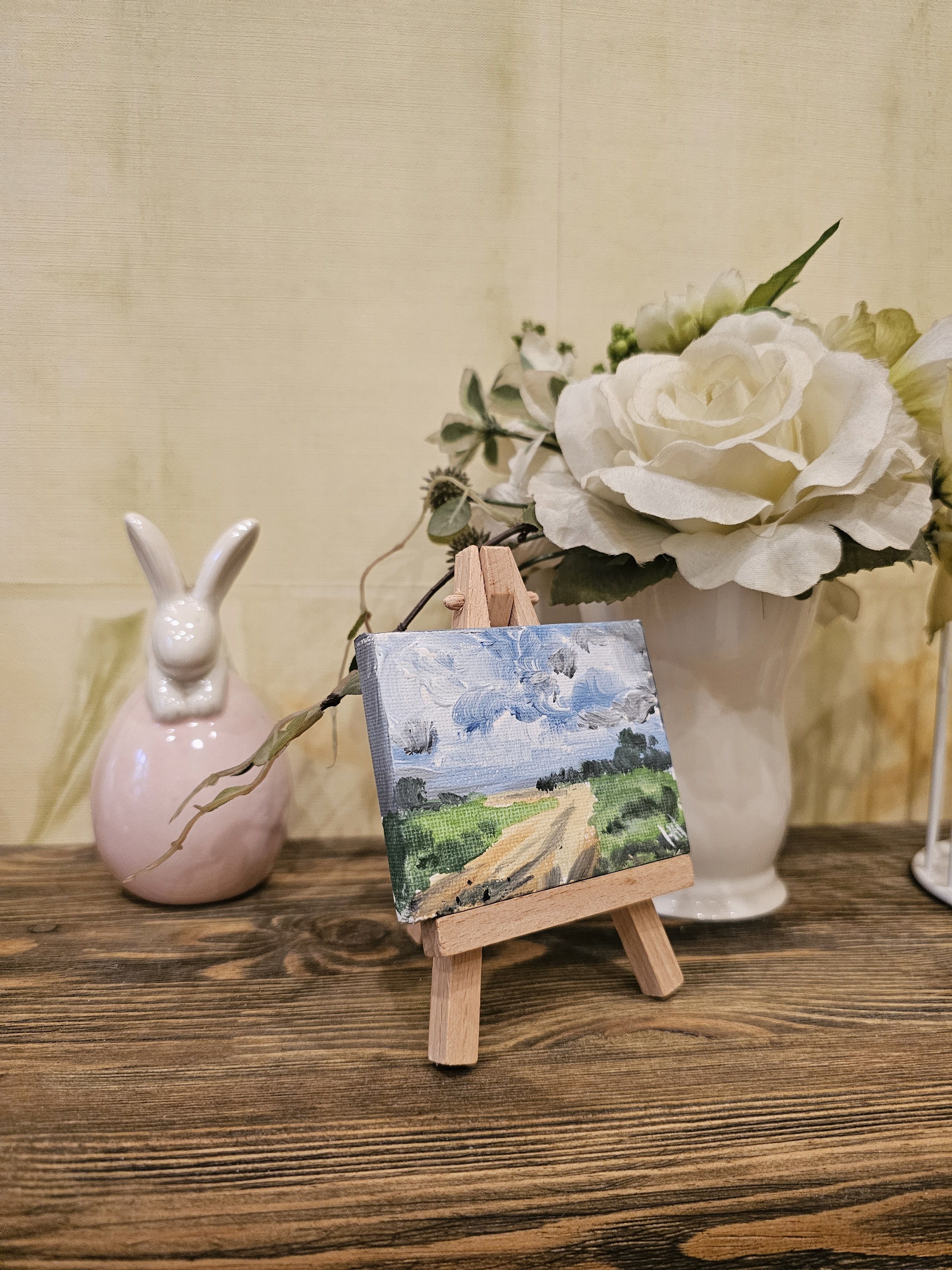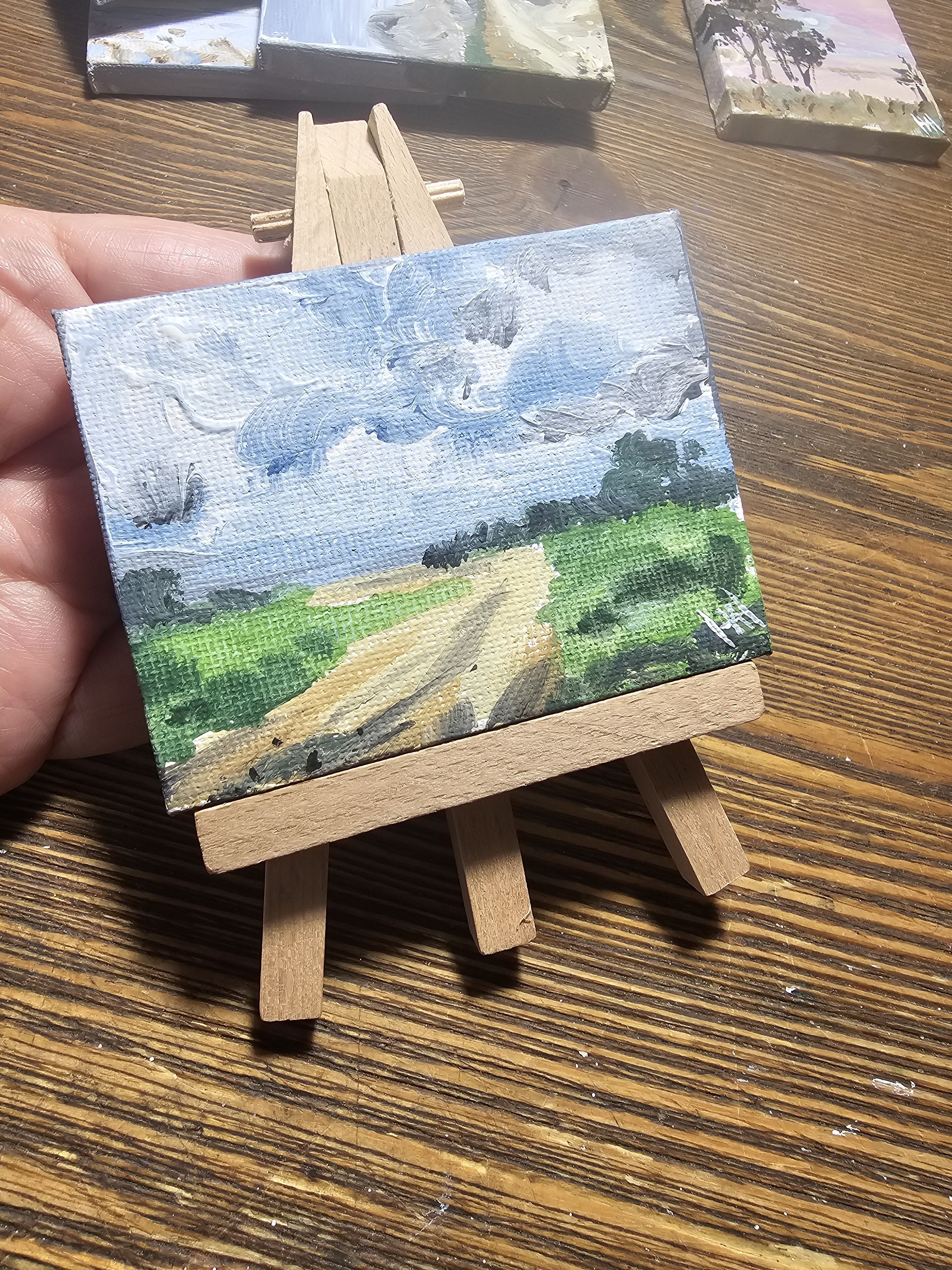 Миниатюра акрилом на холсте "Летний день" с таким же миниатюрным мольбертом - это уникальное произведение искусства, которое станет отличным дополнением к вашему интерьеру или прекрасным подарком для любимых людей. Эта картина выполнена в технике акрил на холсте, что обеспечивает ее долговечность и яркость цветов. Она создана авторской рукой, что делает каждую картину уникальной и неповторимой.