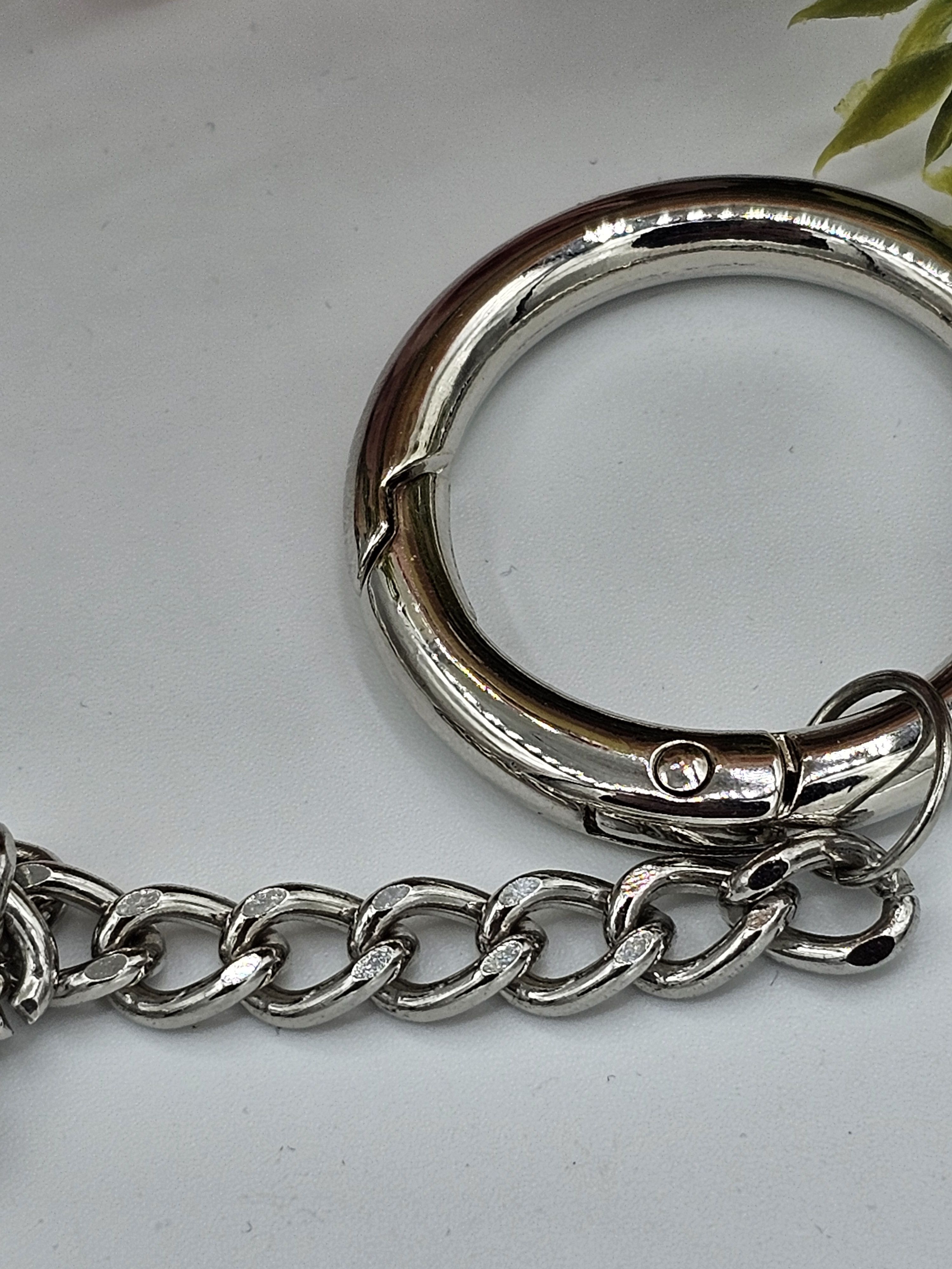 Обвес заканчивается двумя круглыми карабинами 35мм серебристого цвета, которые позволяют легко и надежно прикрепить его к сумке, одежде или другим предметам.