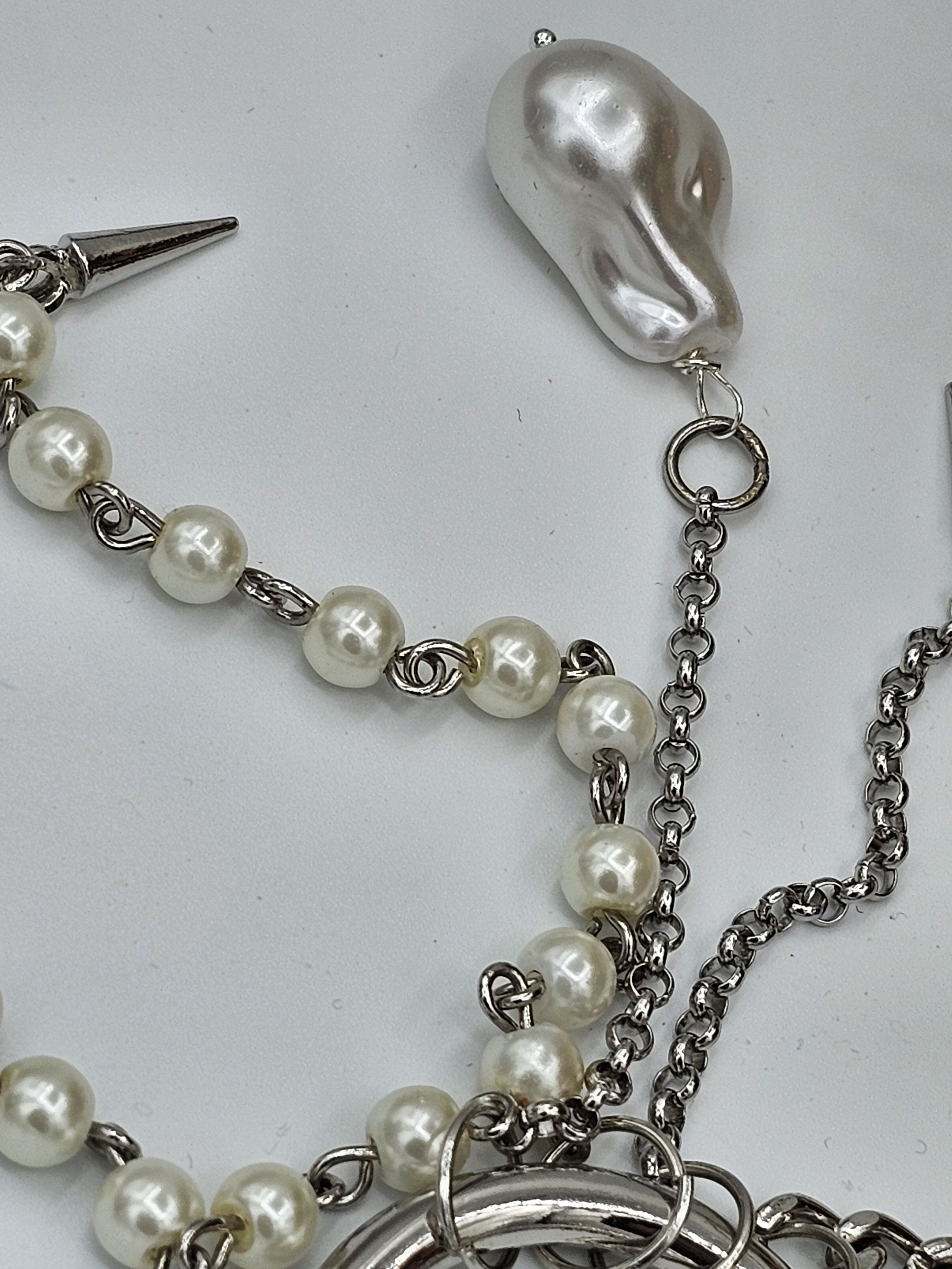 Обвес выполнен из искусственного жемчуга, что придает ему неповторимый блеск и мягкость. Вставка из барочного жемчуга и имитации жемчуга добавляет изделию изысканности и шарма.