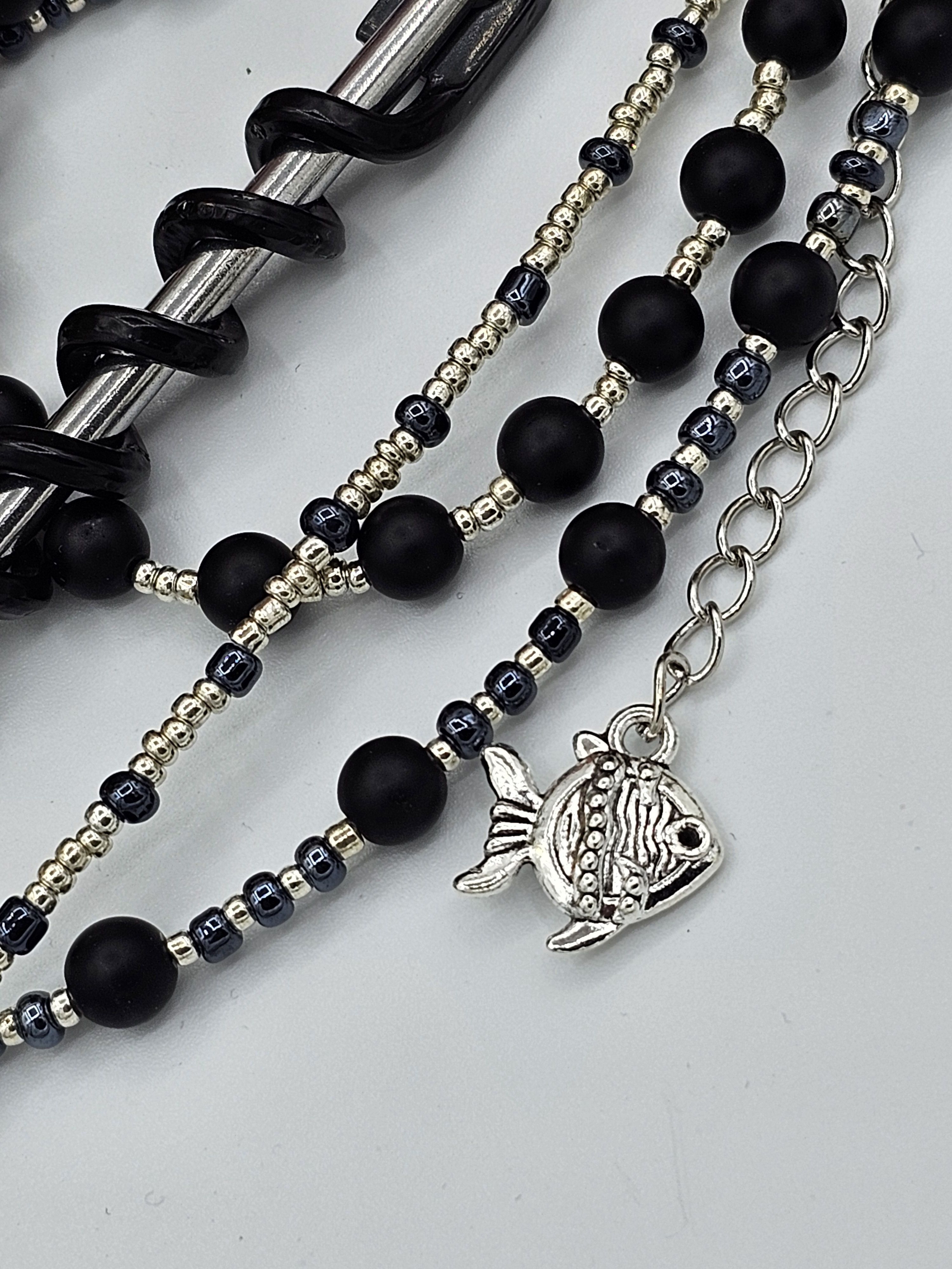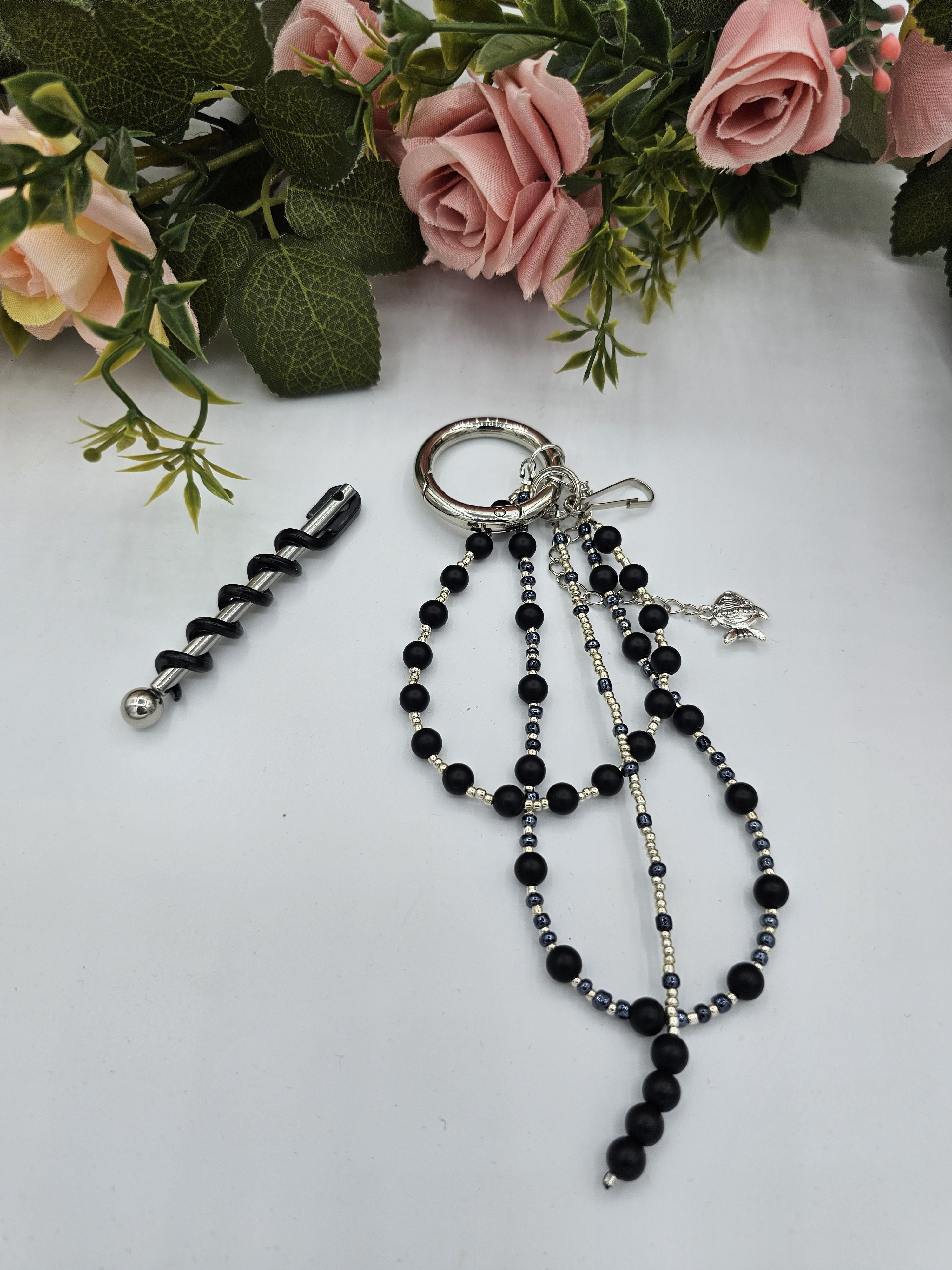 Обвес выполнен из круглых бусин черной Шунгита и бисера.