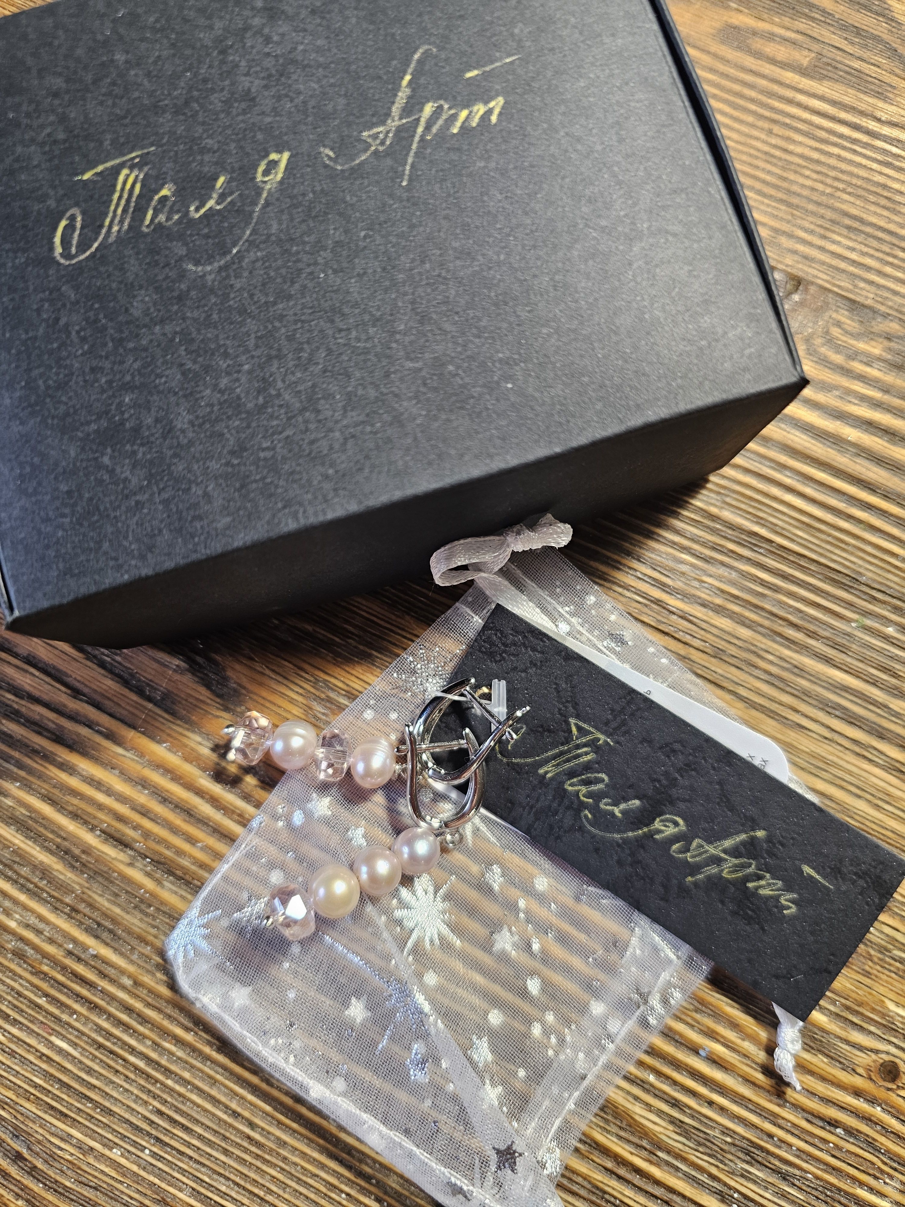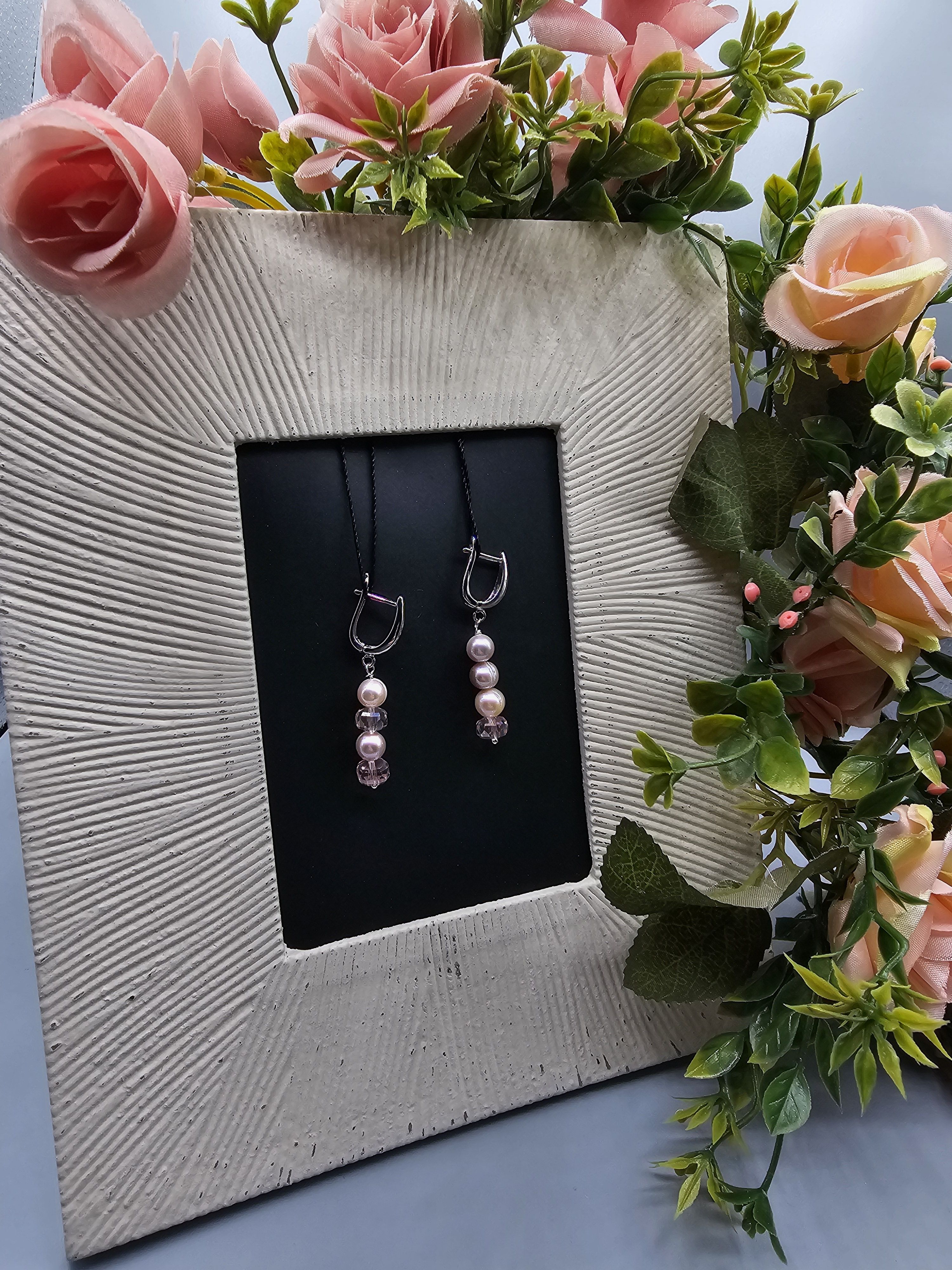 Серьги из натуральных камней "Розовая дымка", ручная работа, гипоаллергеновый материал