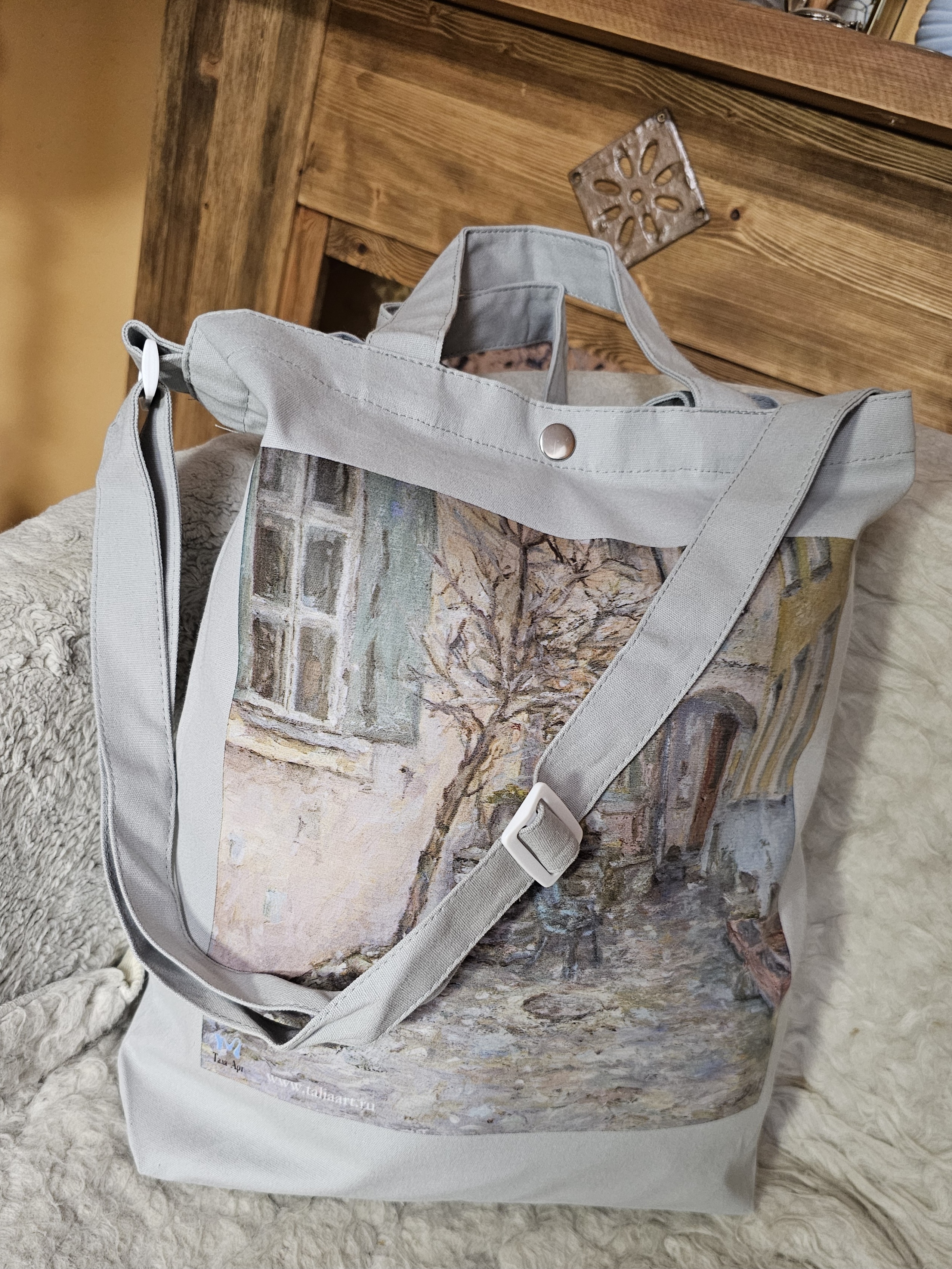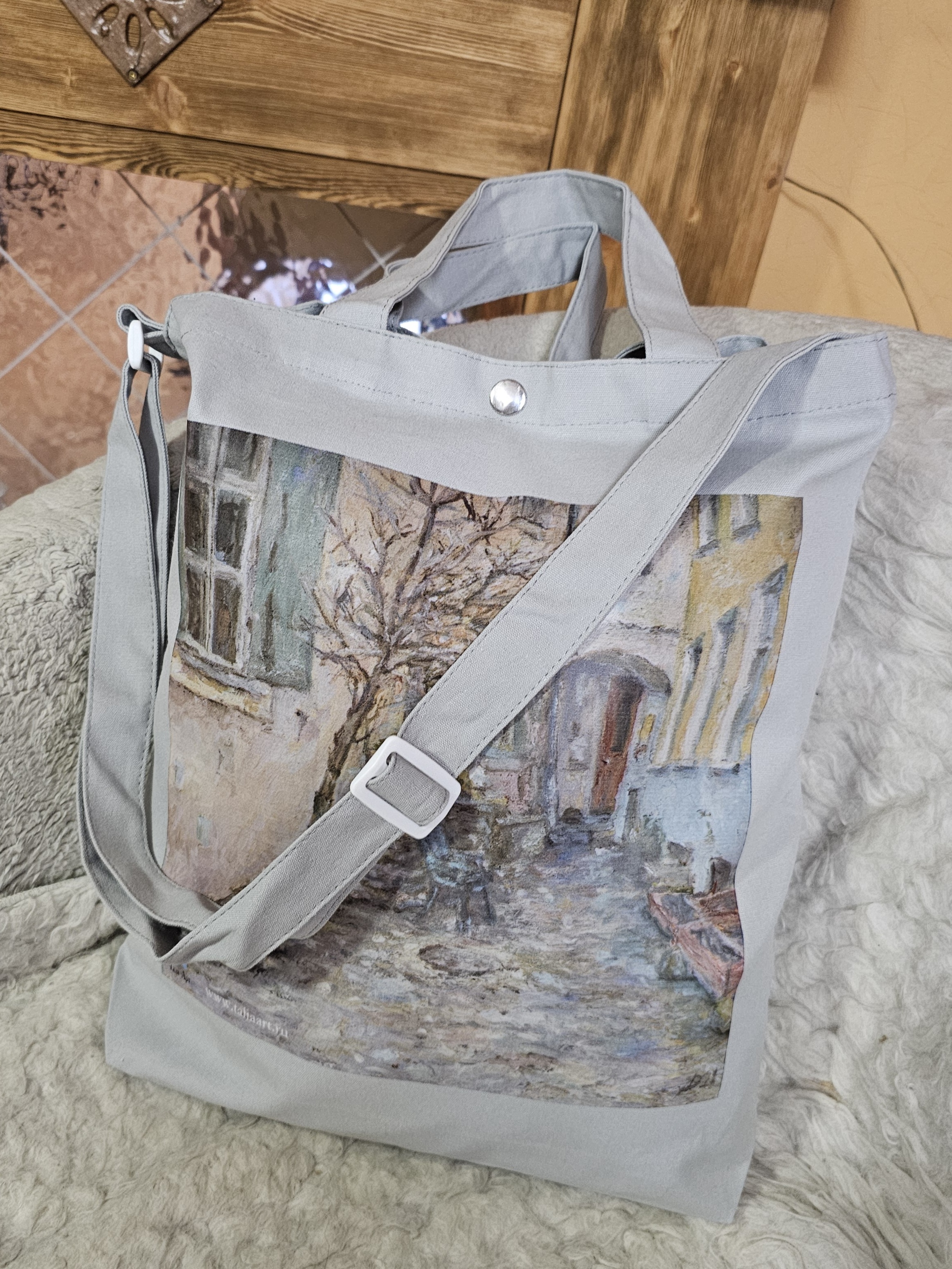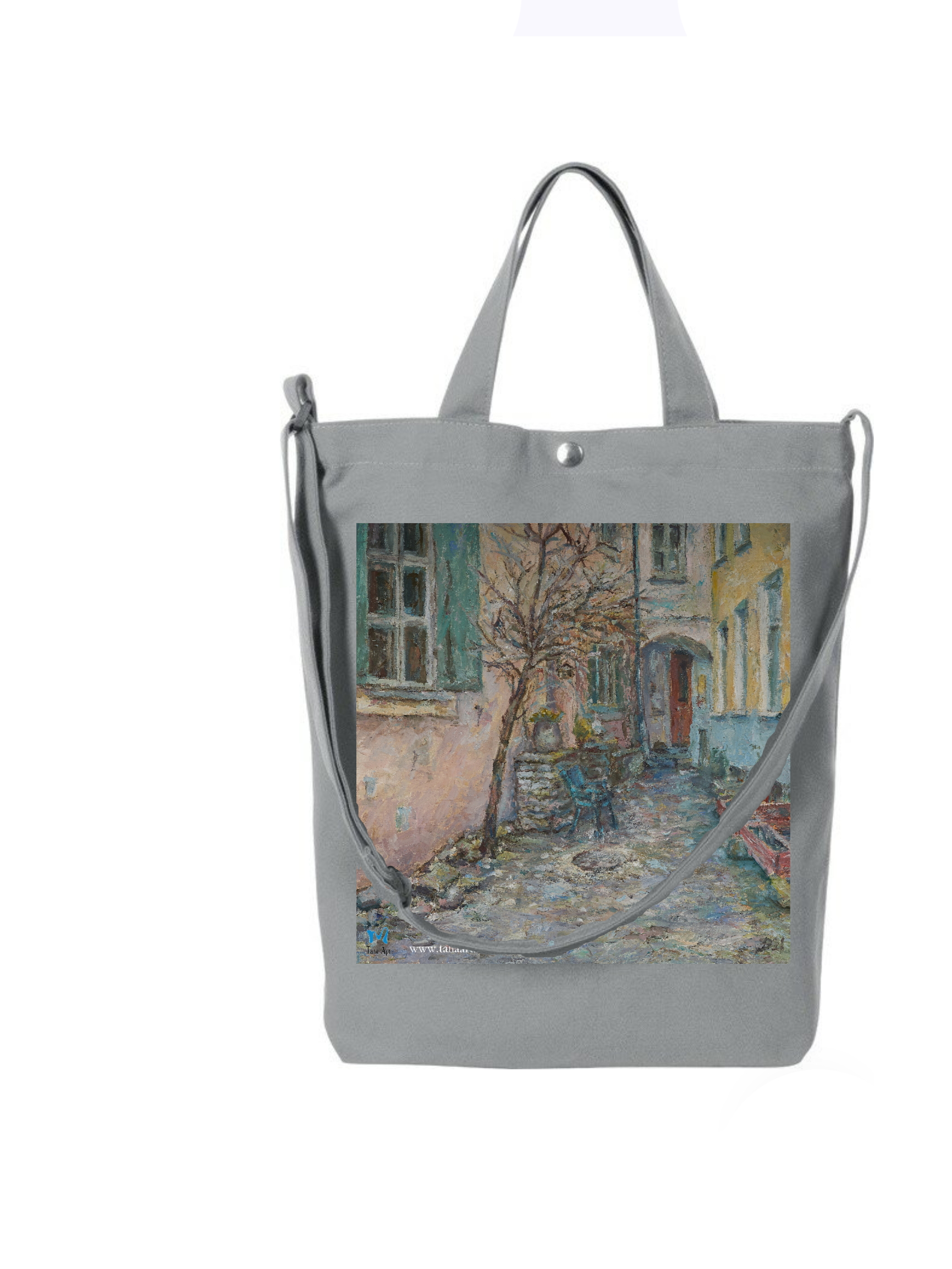 Стильная сумка-шоппер из мягкого хлопка станет незаменимым аксессуаром для городских прогулок и покупок. Регулируемая лямка обеспечивает комфорт при ношении, а надежная кнопка фиксирует содержимое внутри. Оригинальный принт «Таллинский дворик» добавляет индивидуальности образу, сочетаясь с классическим дизайном. Компактные размеры позволяют легко брать её с собой куда угодно.